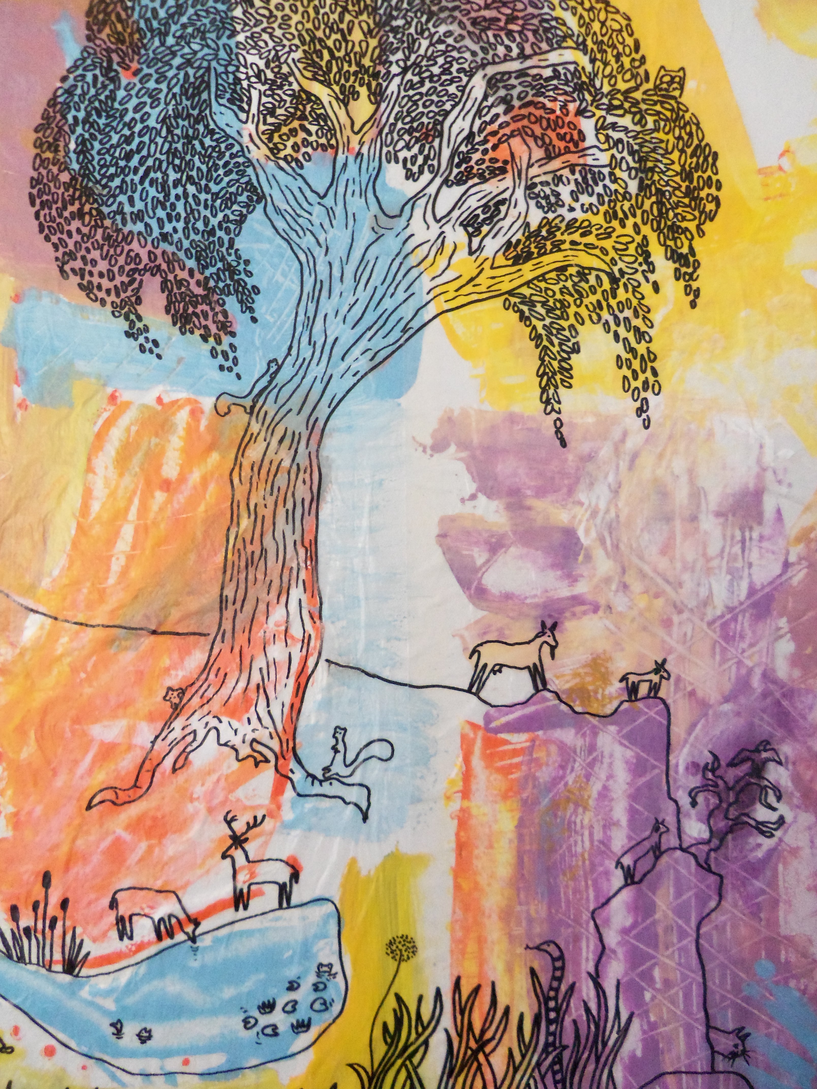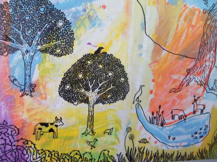 This piece was going to be many different things throughout the year, but I decided on a Garden of Eden type scene—minus Adam and Eve.  I really just wanted an excuse to draw little animals.  Enjoy.