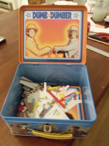 This is my shaggy paper painting.  I’m not quite sure if this piece is crumby or the opposite of crumby.  My favorite thing about this work is the lunchbox in which I kept the paper scraps.  I still love Dumb and Dumber, I don’t care what anyone says.