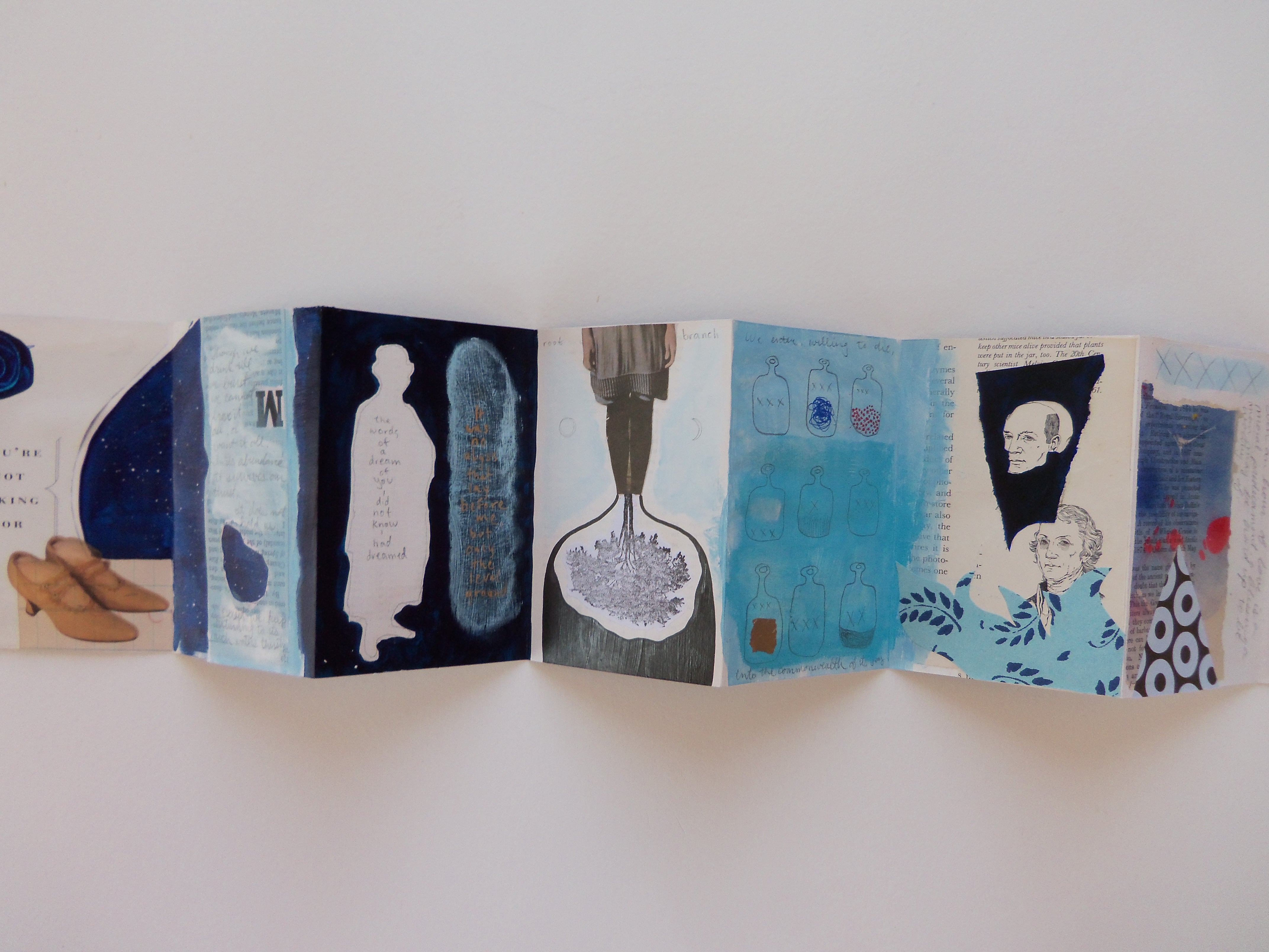 Hello friends! I’ve had another productive week in the studio. This week I have created another accordion book titled nightsongs. This week’s work is inspired by the poetry of Wendell Berry, specifically the poem “The Country of Marriage,” which can be found in his collection of poetry by the same title. If you’ve not heard of Mr. Berry, it would be worth your while to do a little research and learn a bit about his body of work. He is both a writer and a farmer. He was born in Kentucky in 1934, and he continues to live and work there. He is concerned with rural life, local agriculture, and farming communities. I believe it’s safe to say he is a Luddite; he wrote an article for Harper’s in the late eighties titled “Why I Am Not Going to Buy a Computer.”