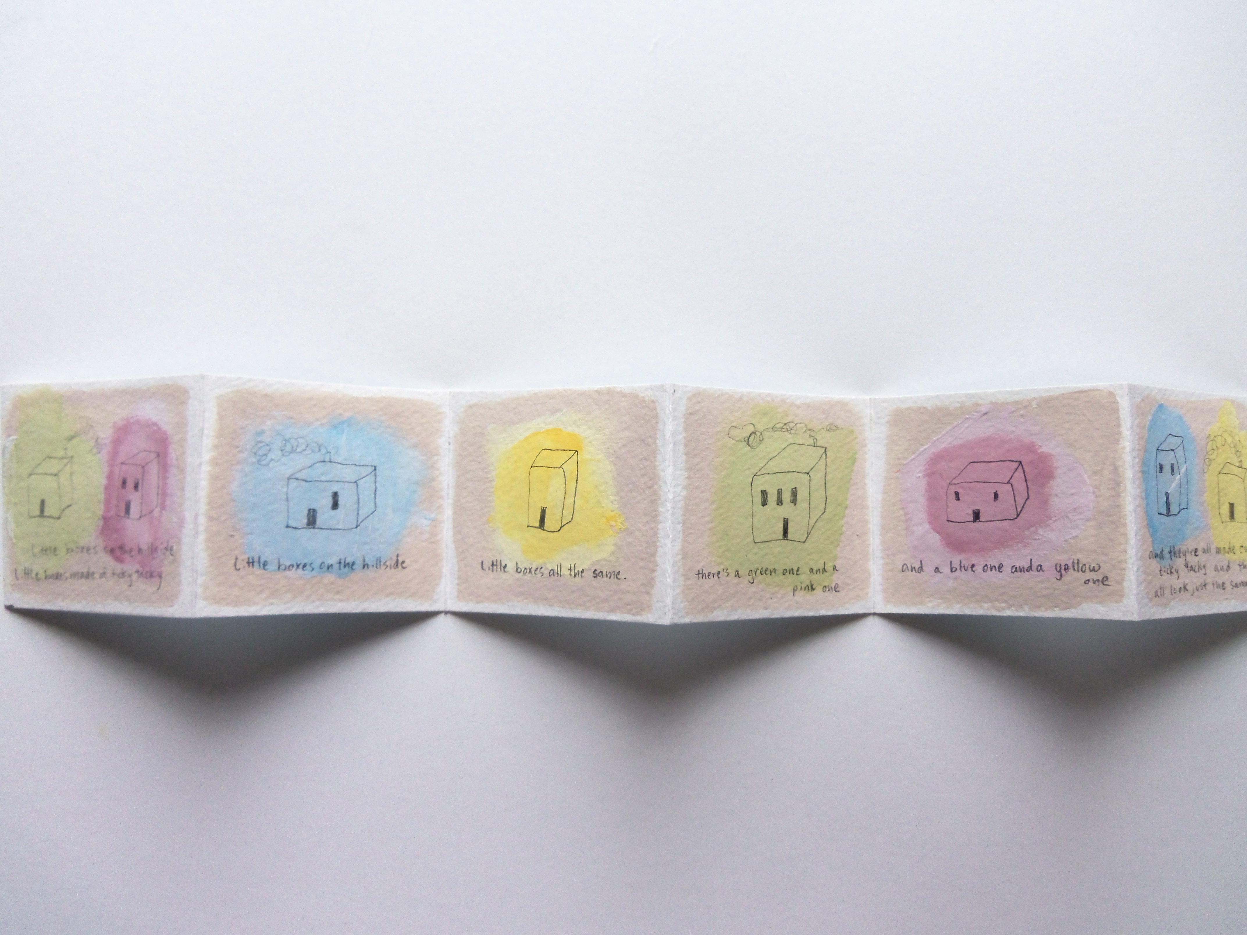 Little Boxes, 2.75"x3", accordian book, acrylic, pencil
