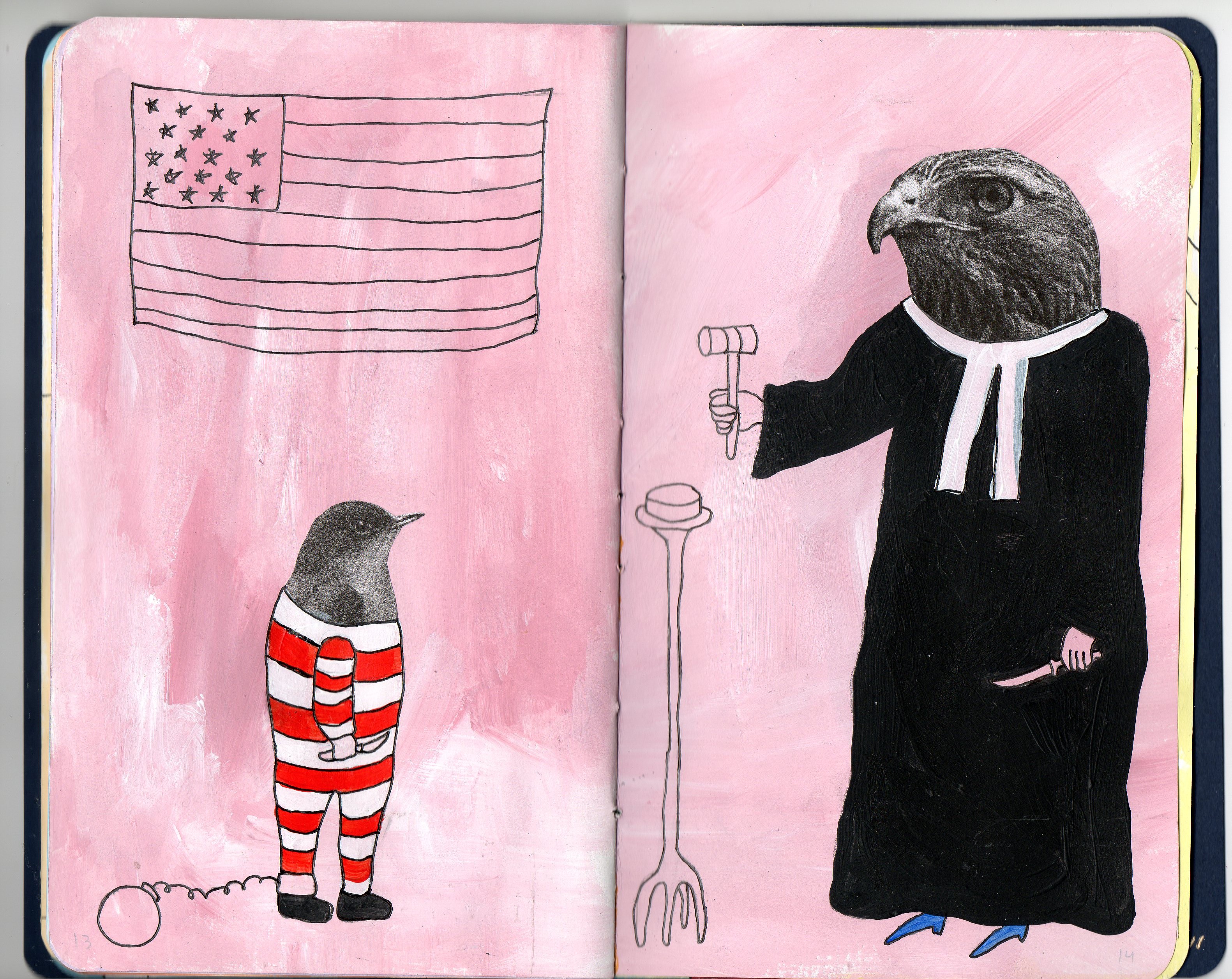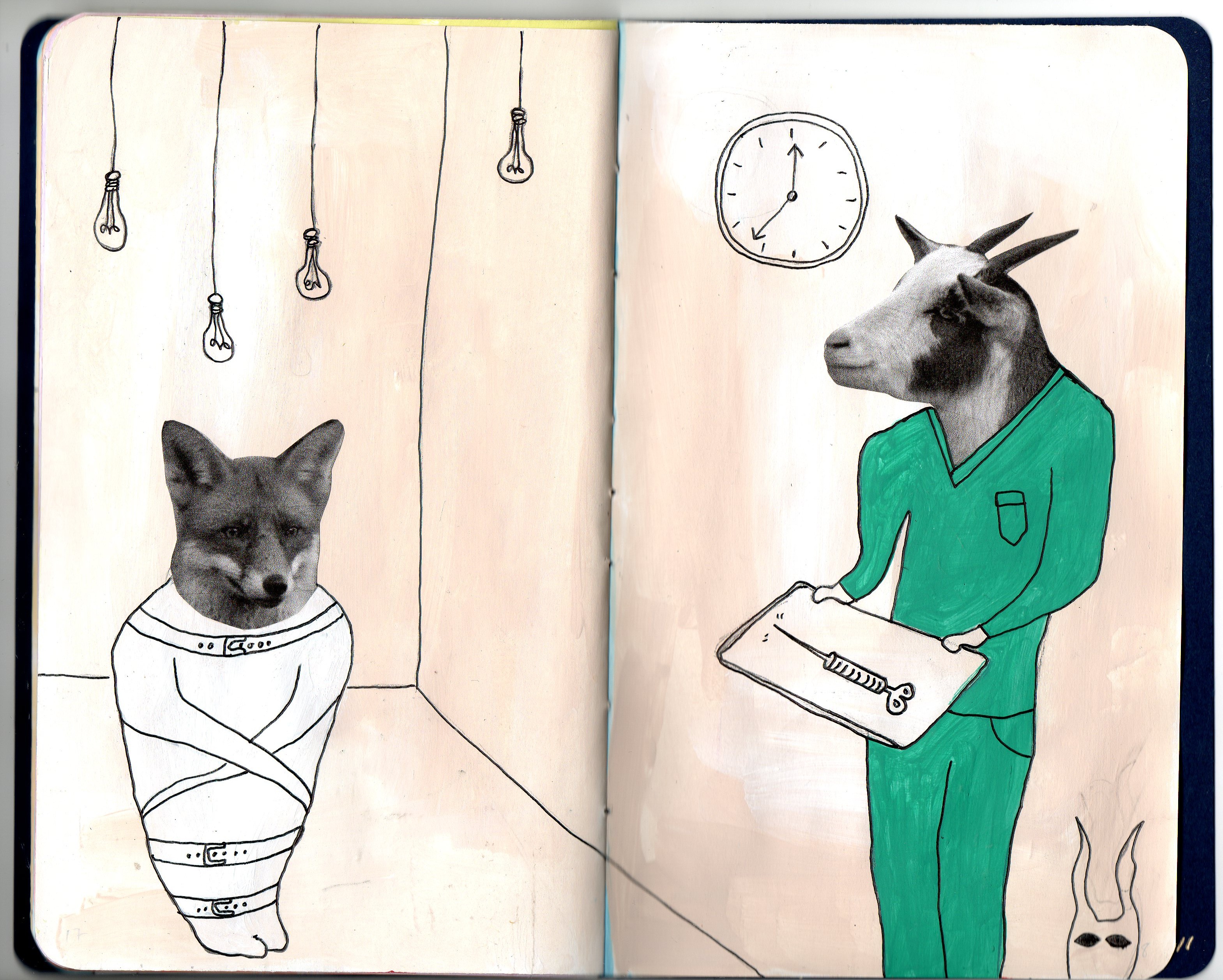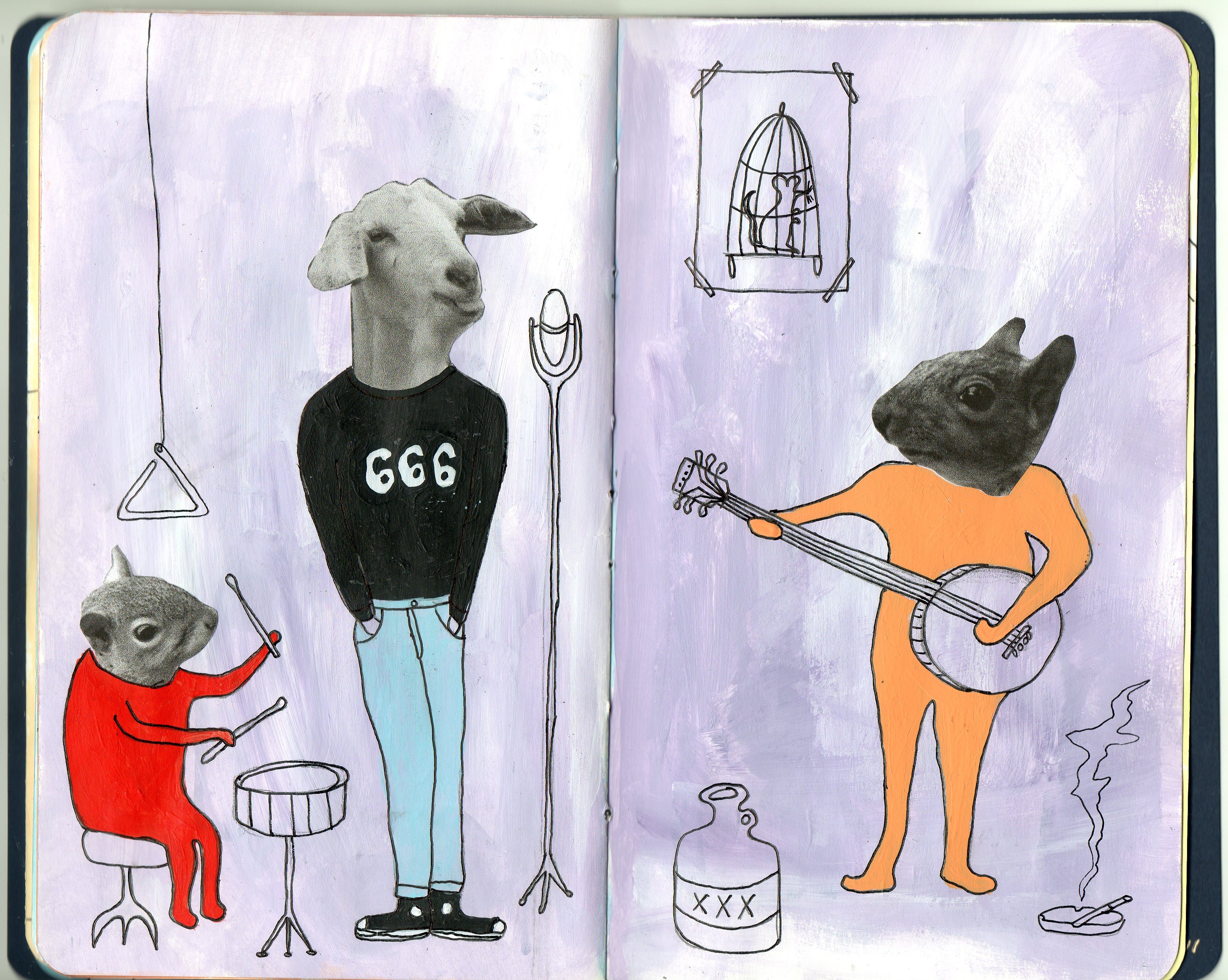 Animal Vignettes, 5"x8" Moleskine Sketchbook, Acrylic, ink, collage, Sketchbook Project, 2011