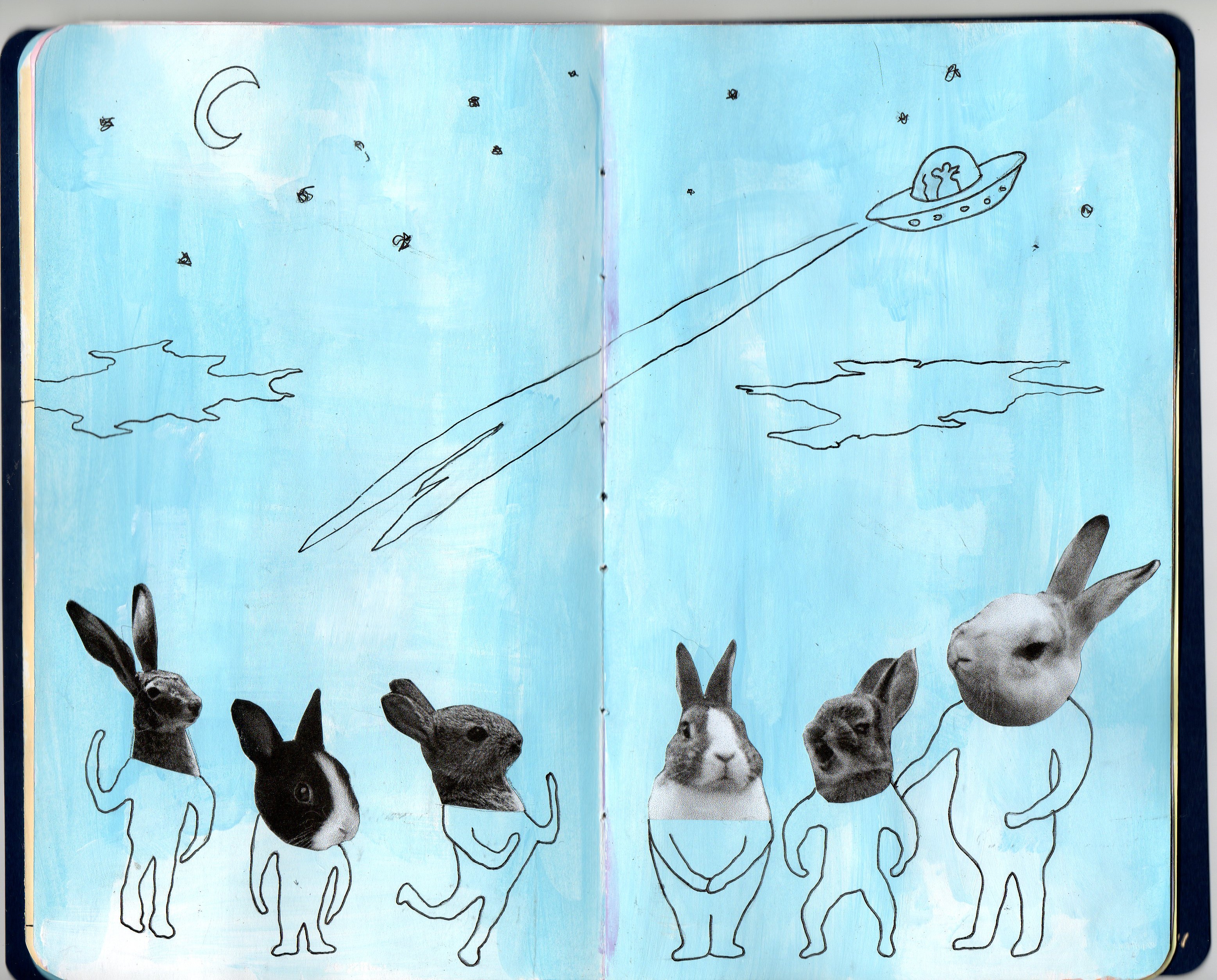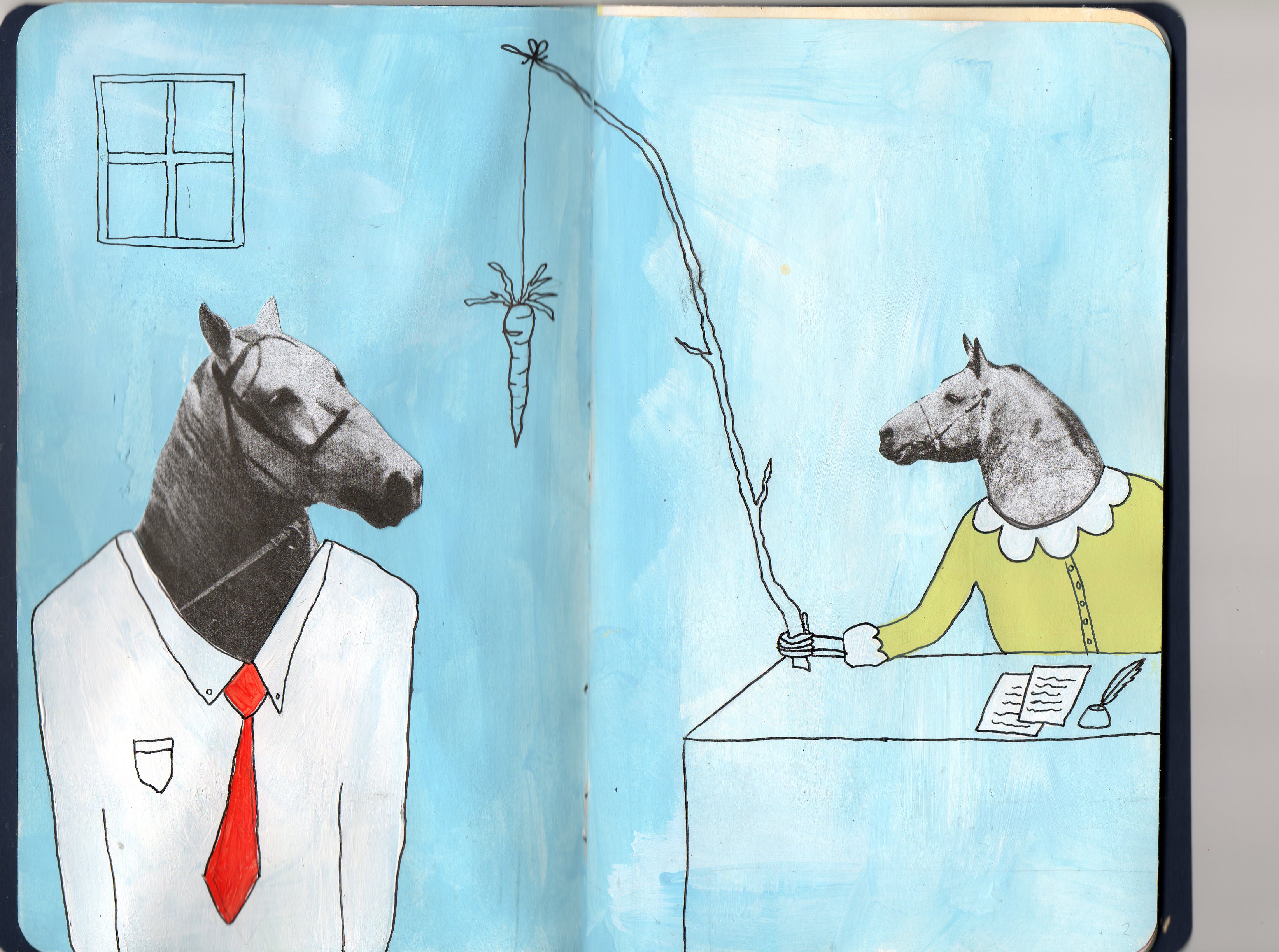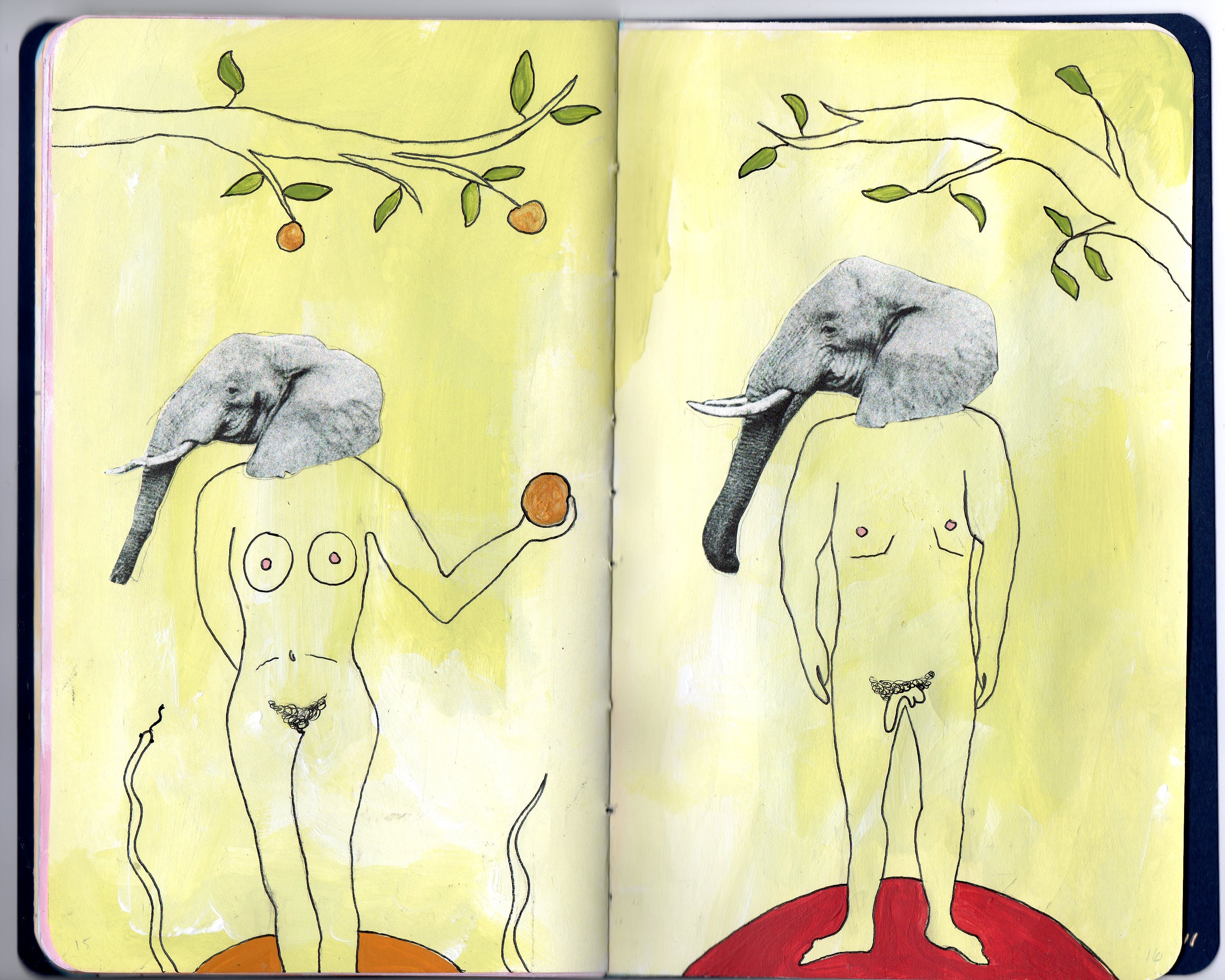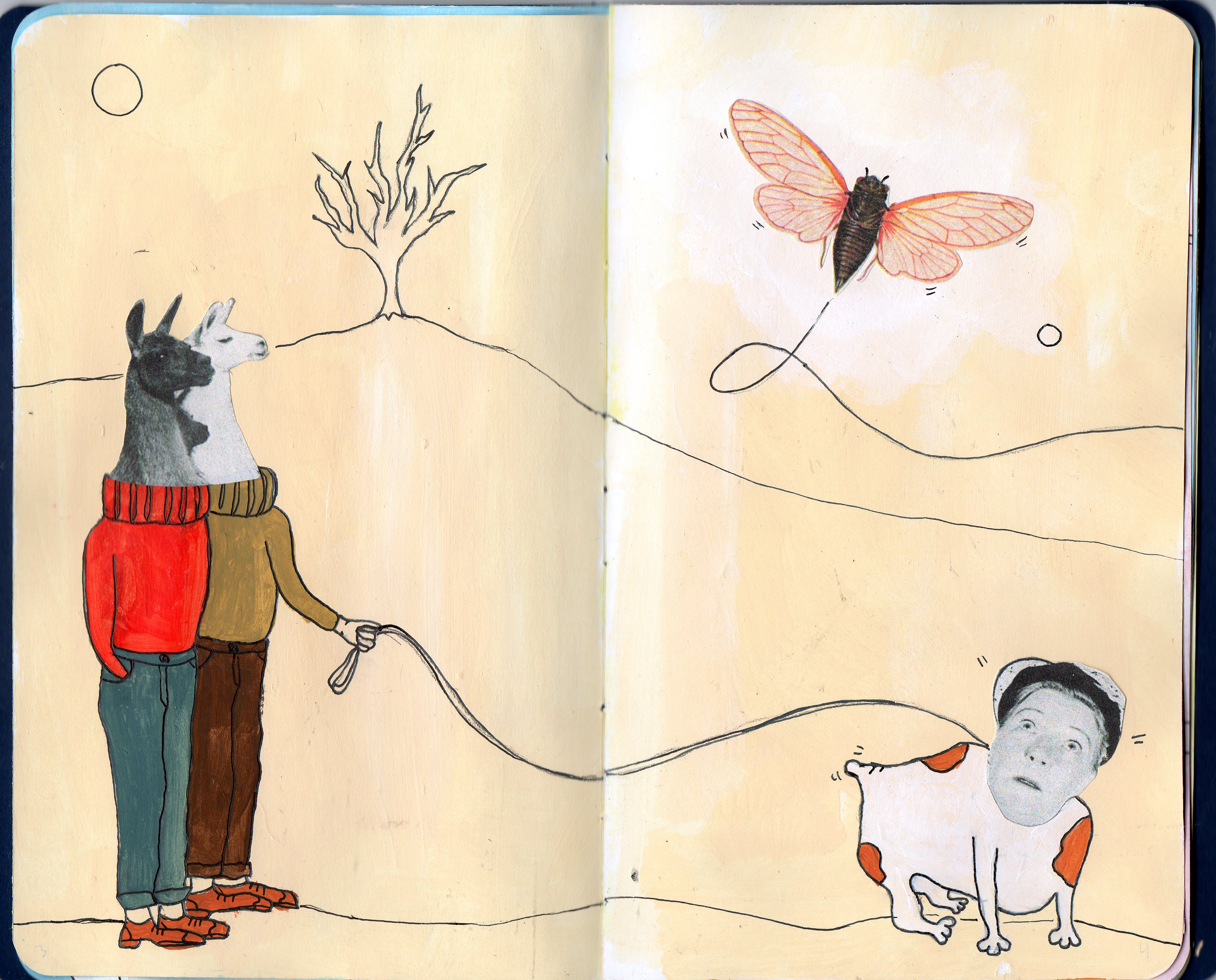 Animal Vignettes, 5"x8" Moleskine Sketchbook, Acrylic, ink, collage, Sketchbook Project, 2011