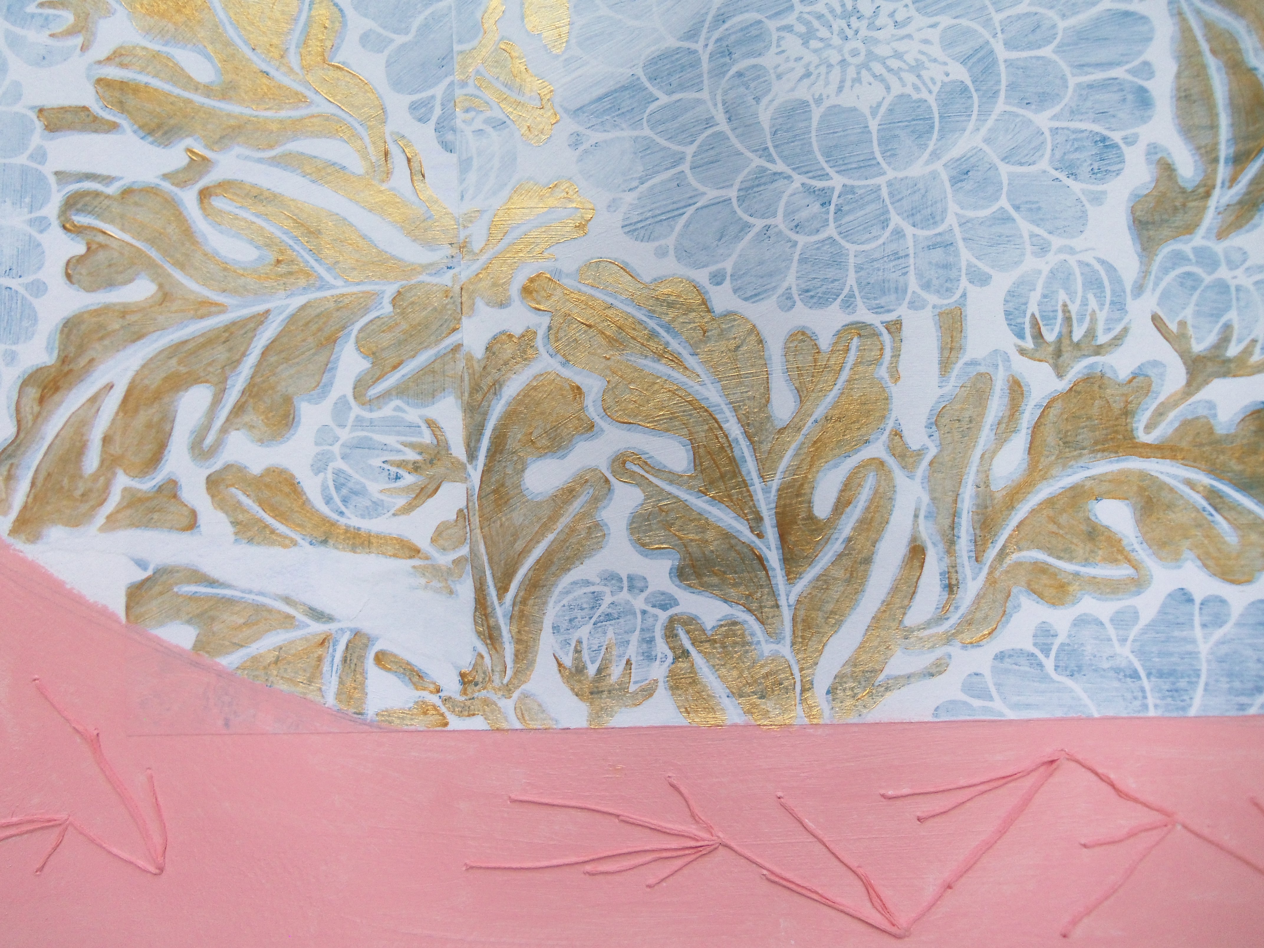 #7,  16"x20", Acrylic, decorative paper, pencil, & embroidery on Arches Cold Press, 2013