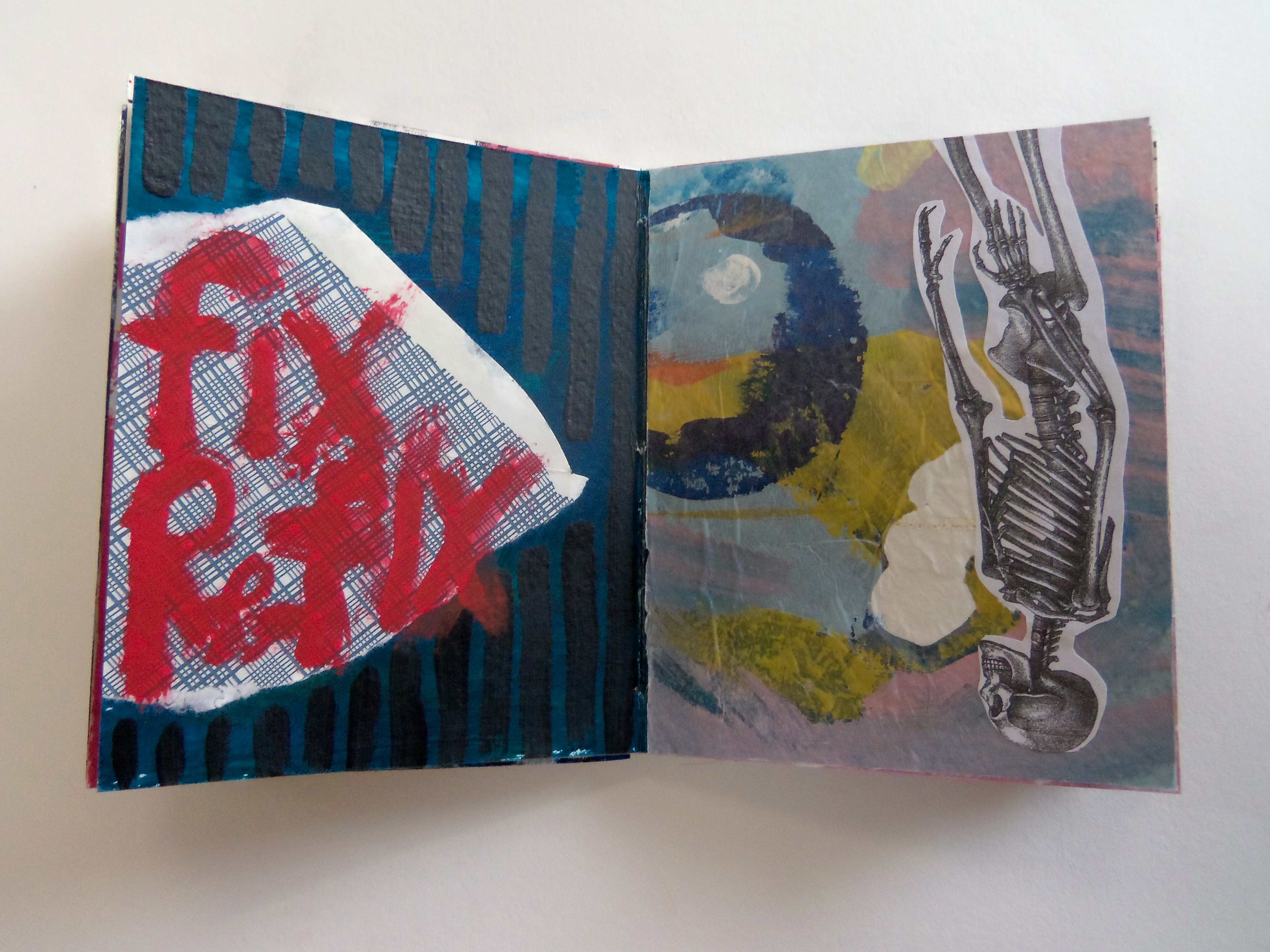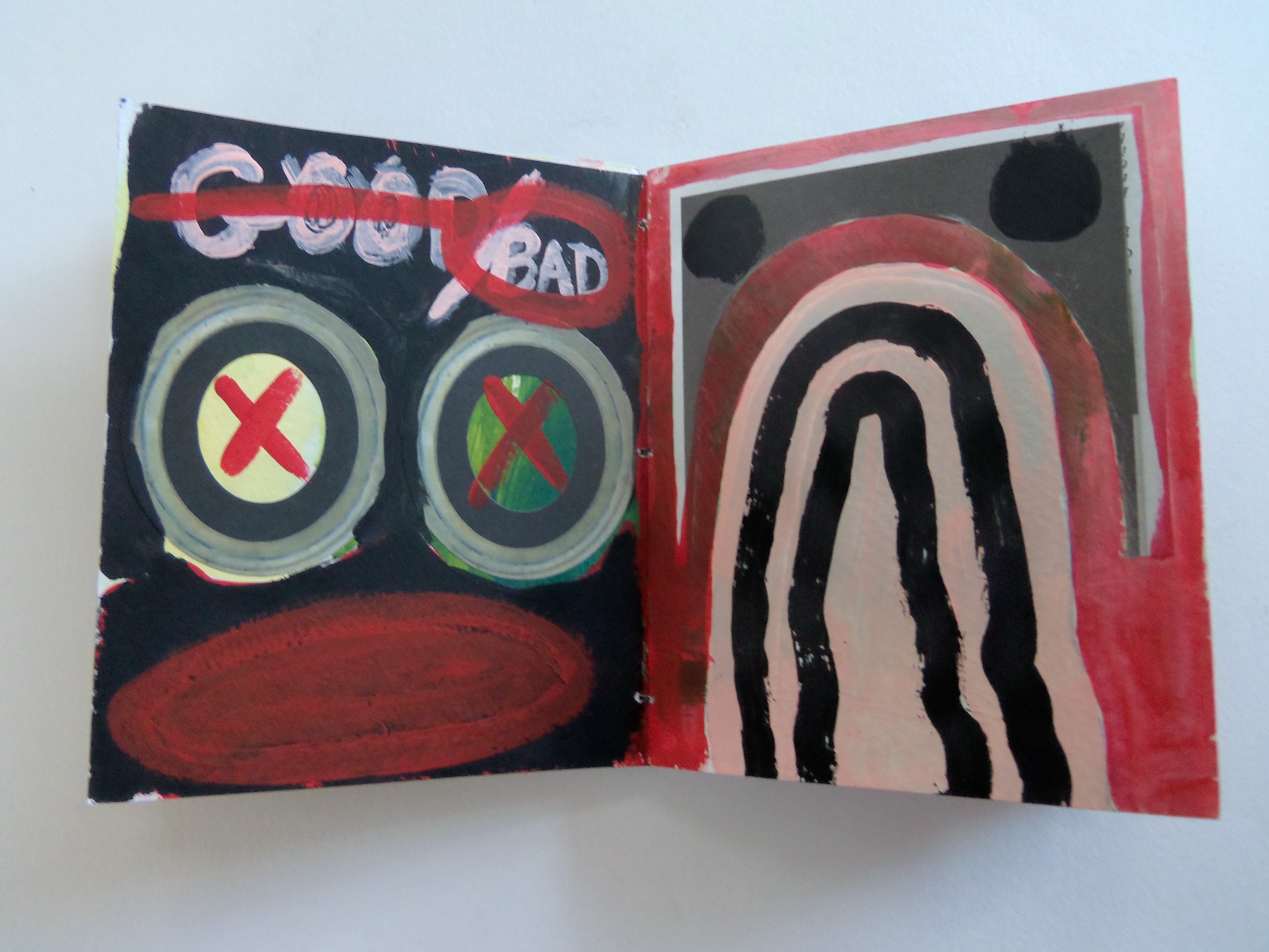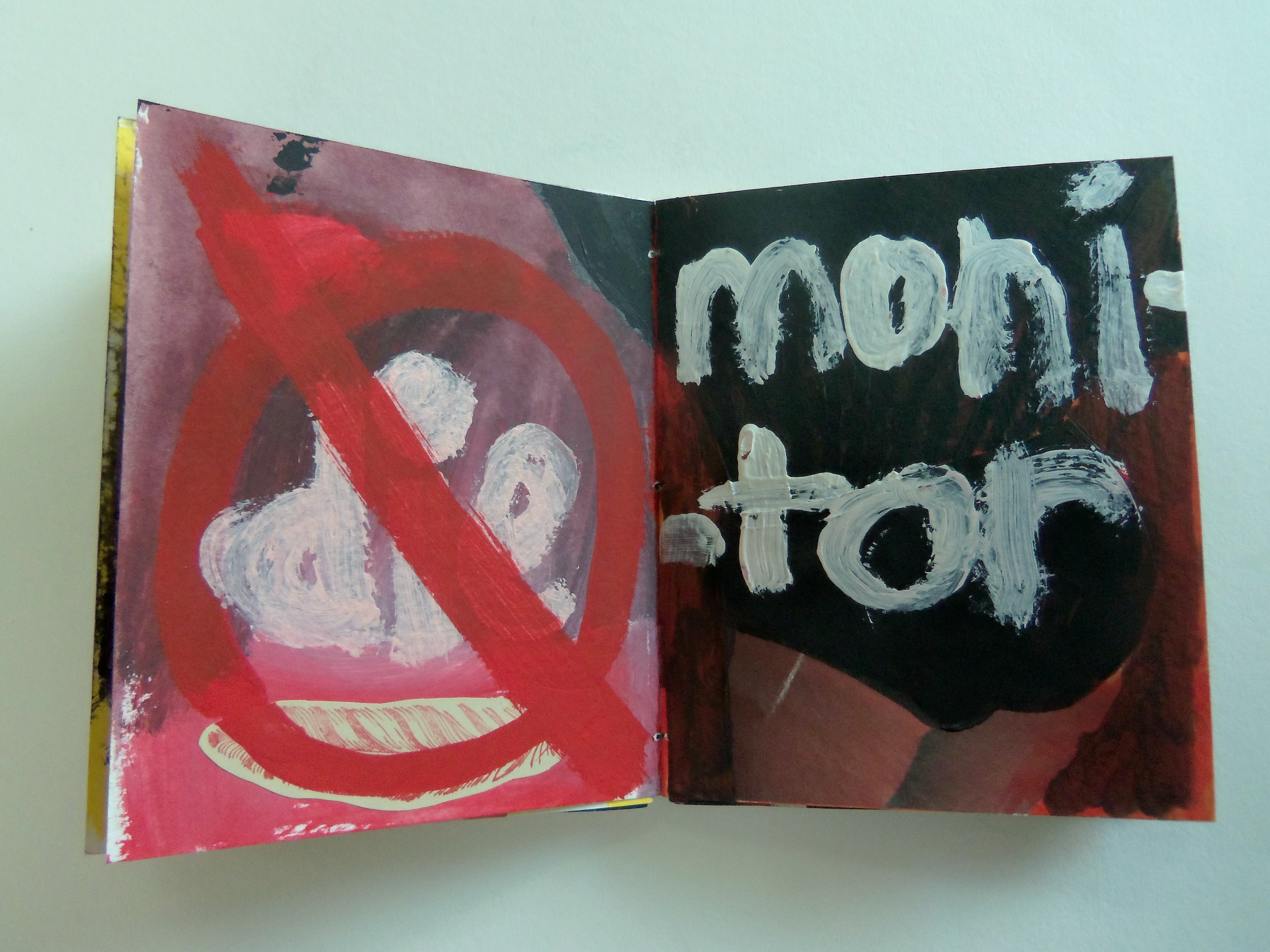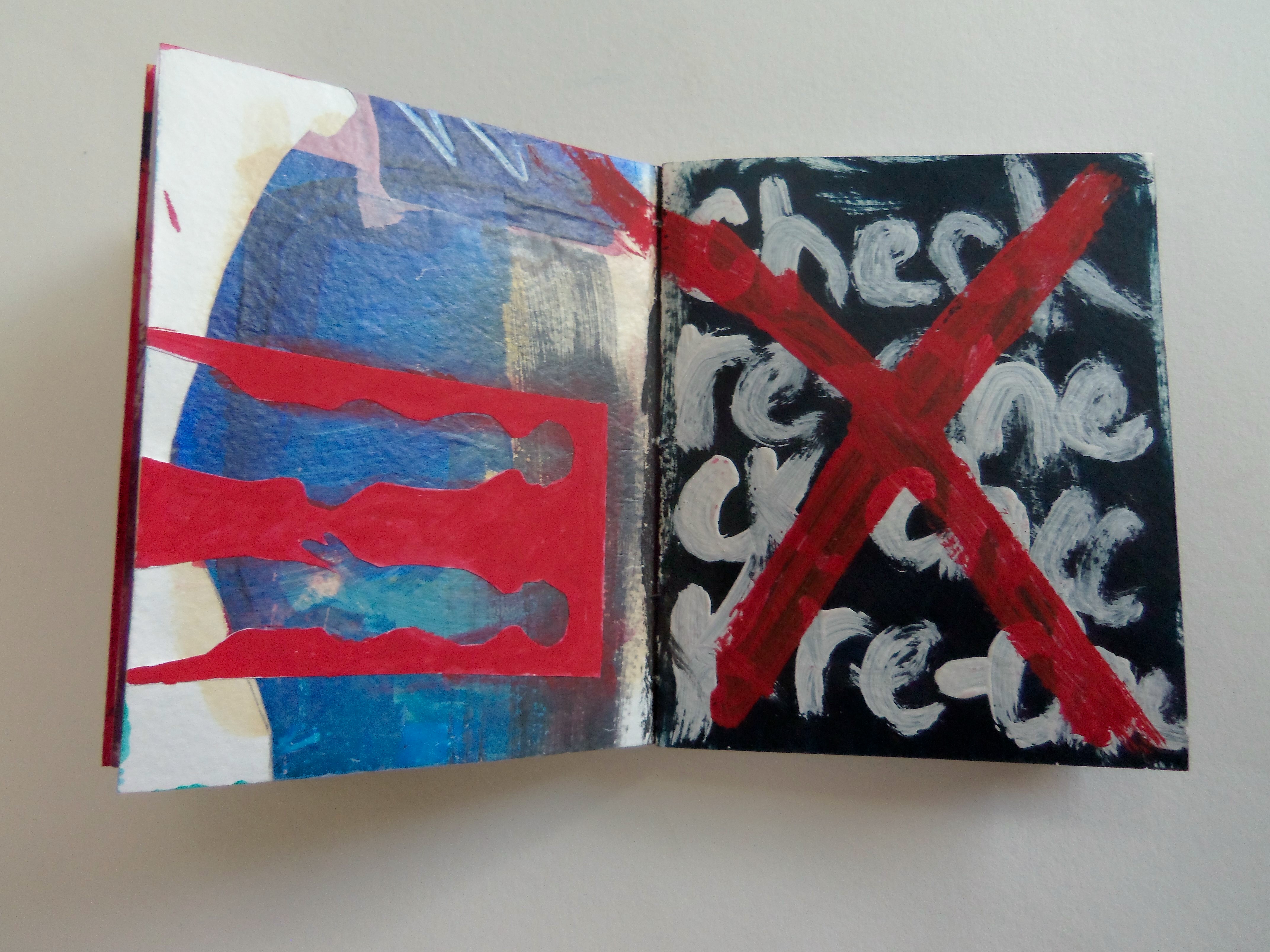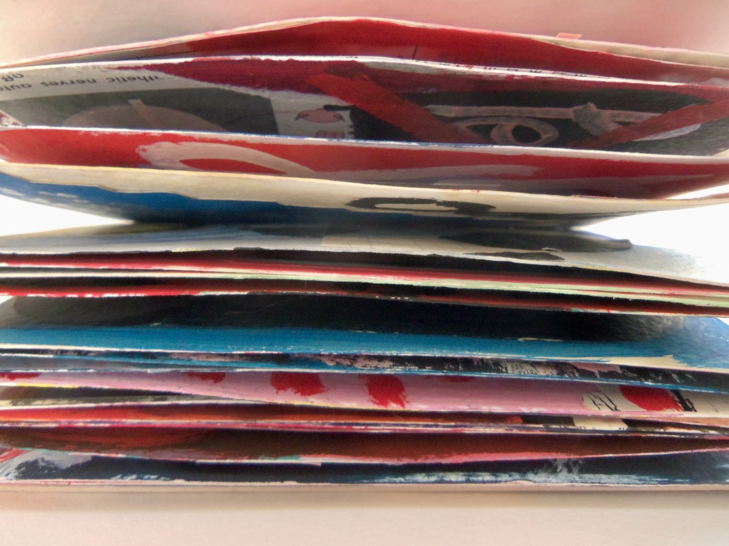 Obsess Manifest, 4.75″x5.75″x1″, Mixed media artist’s book with chain stich binding, 2013