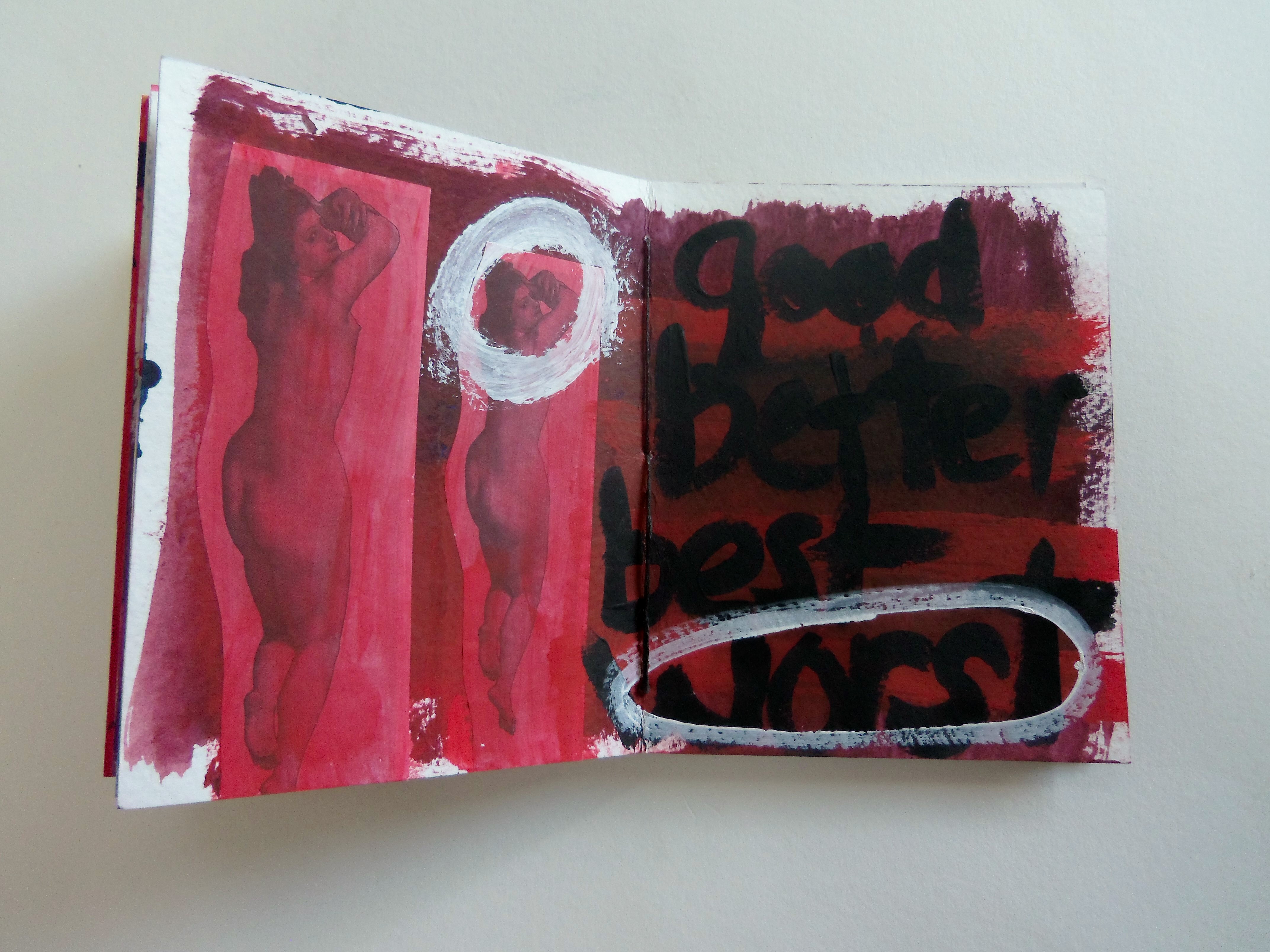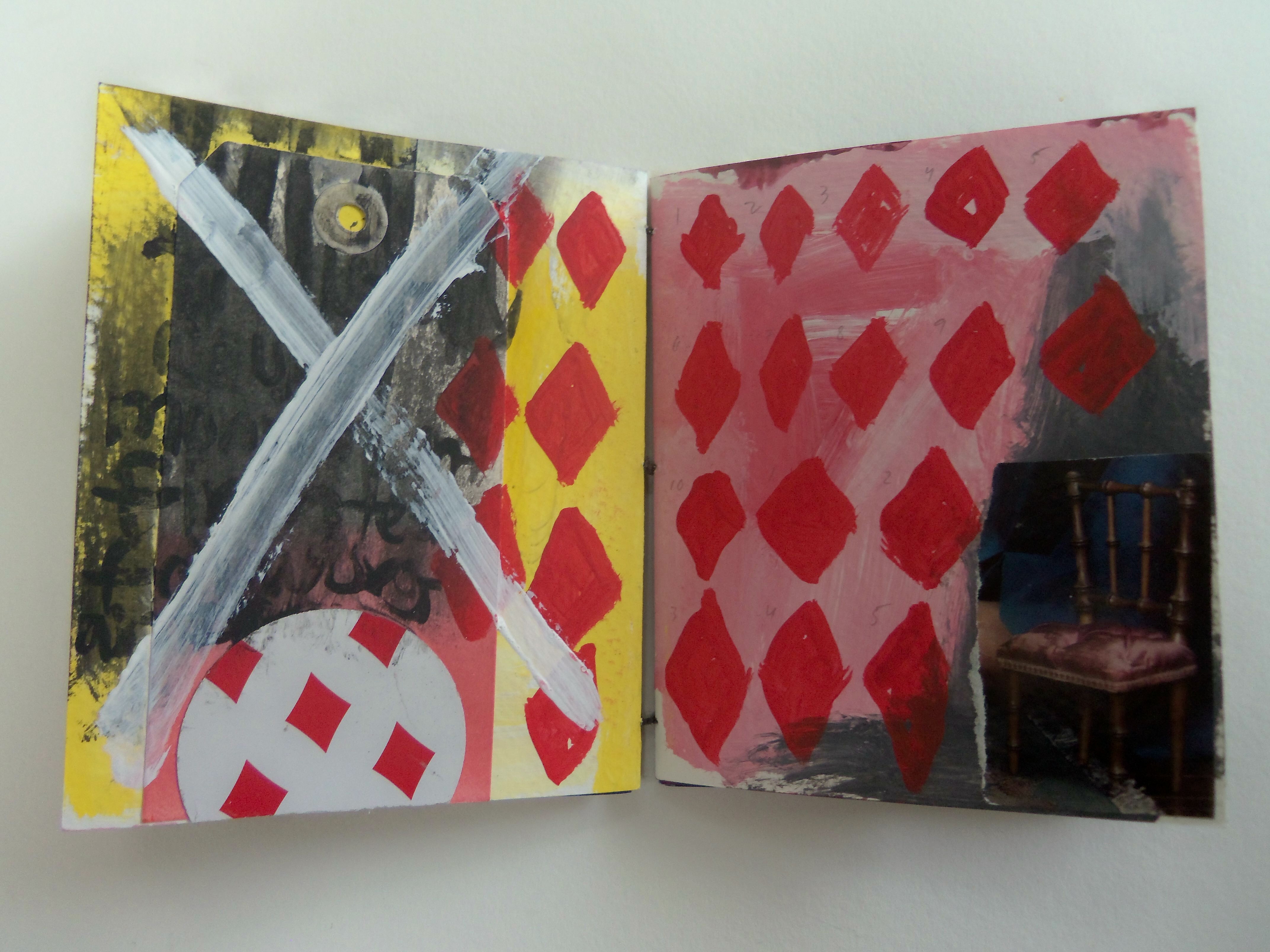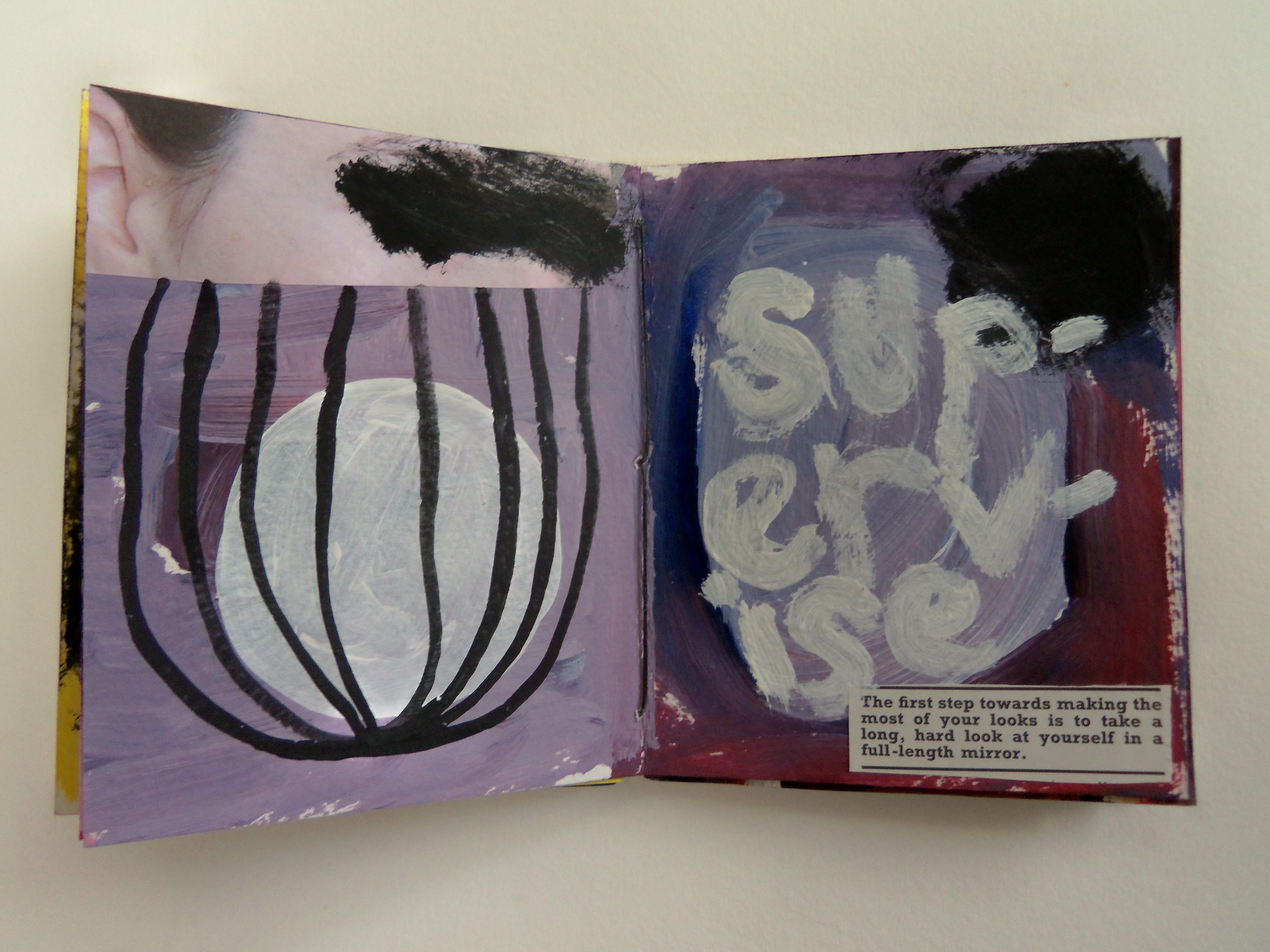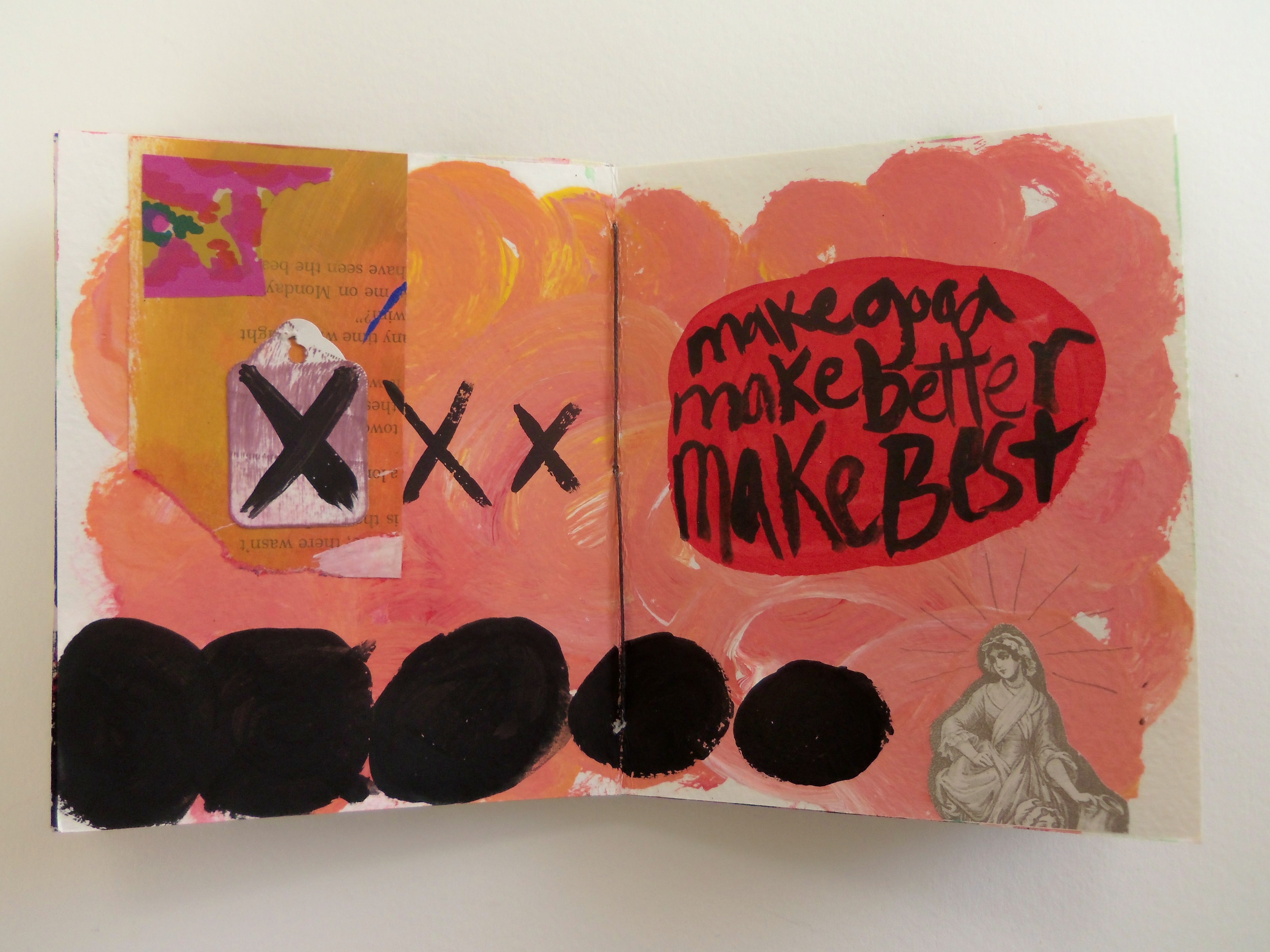 Obsess Manifest, 4.75"x5.75"x1", Mixed media artist's book with chain stich binding, 2013