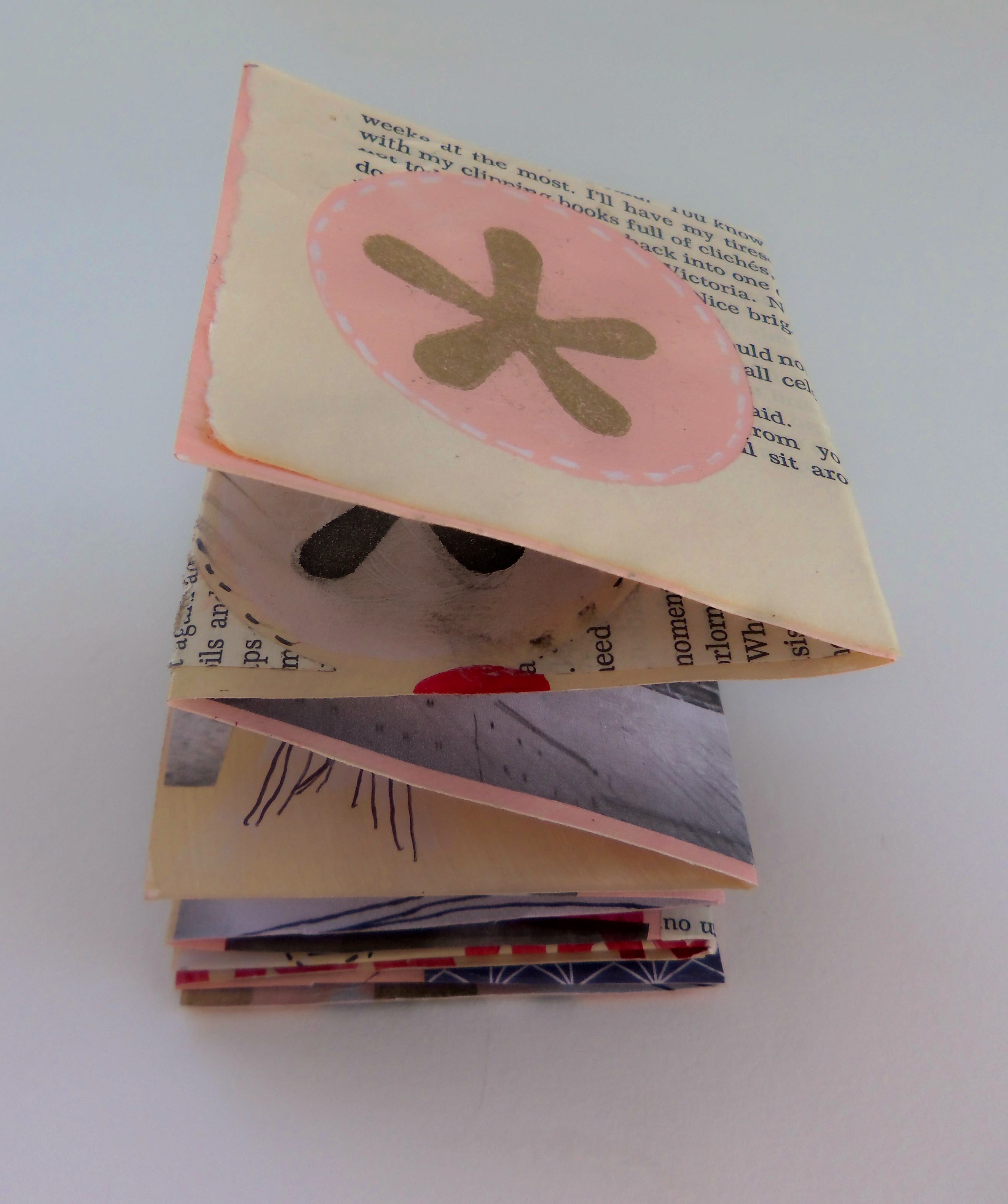 Sometimes You Just Wanna Die, 3″x3″ closed, 9″x12″ opened, Acrylic, ink, pen, pencil, and collage on recycled paper, 2014