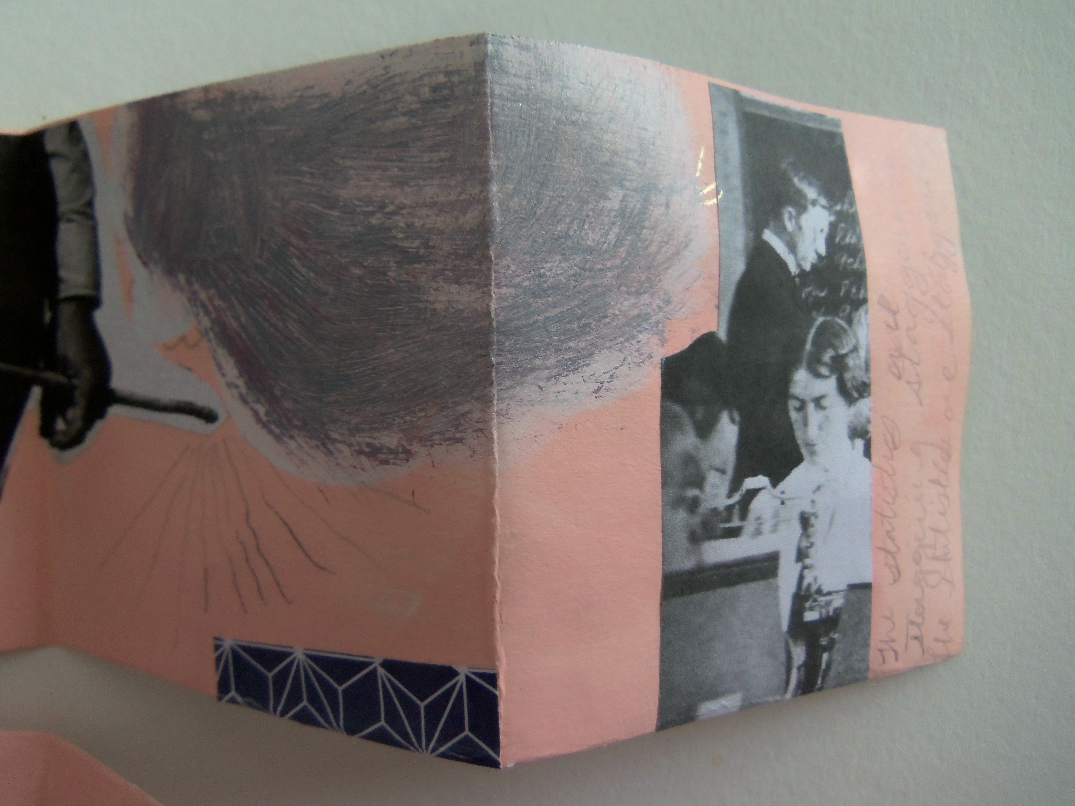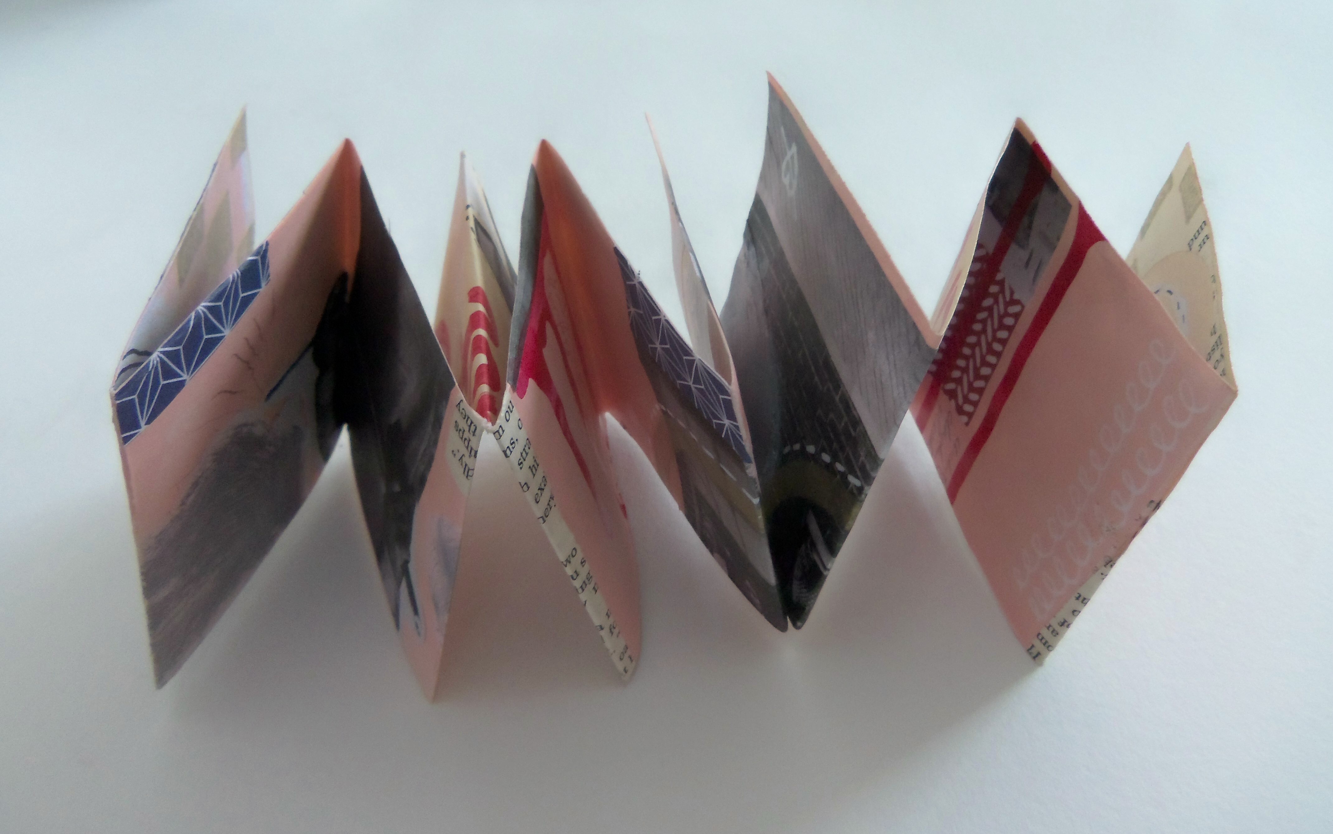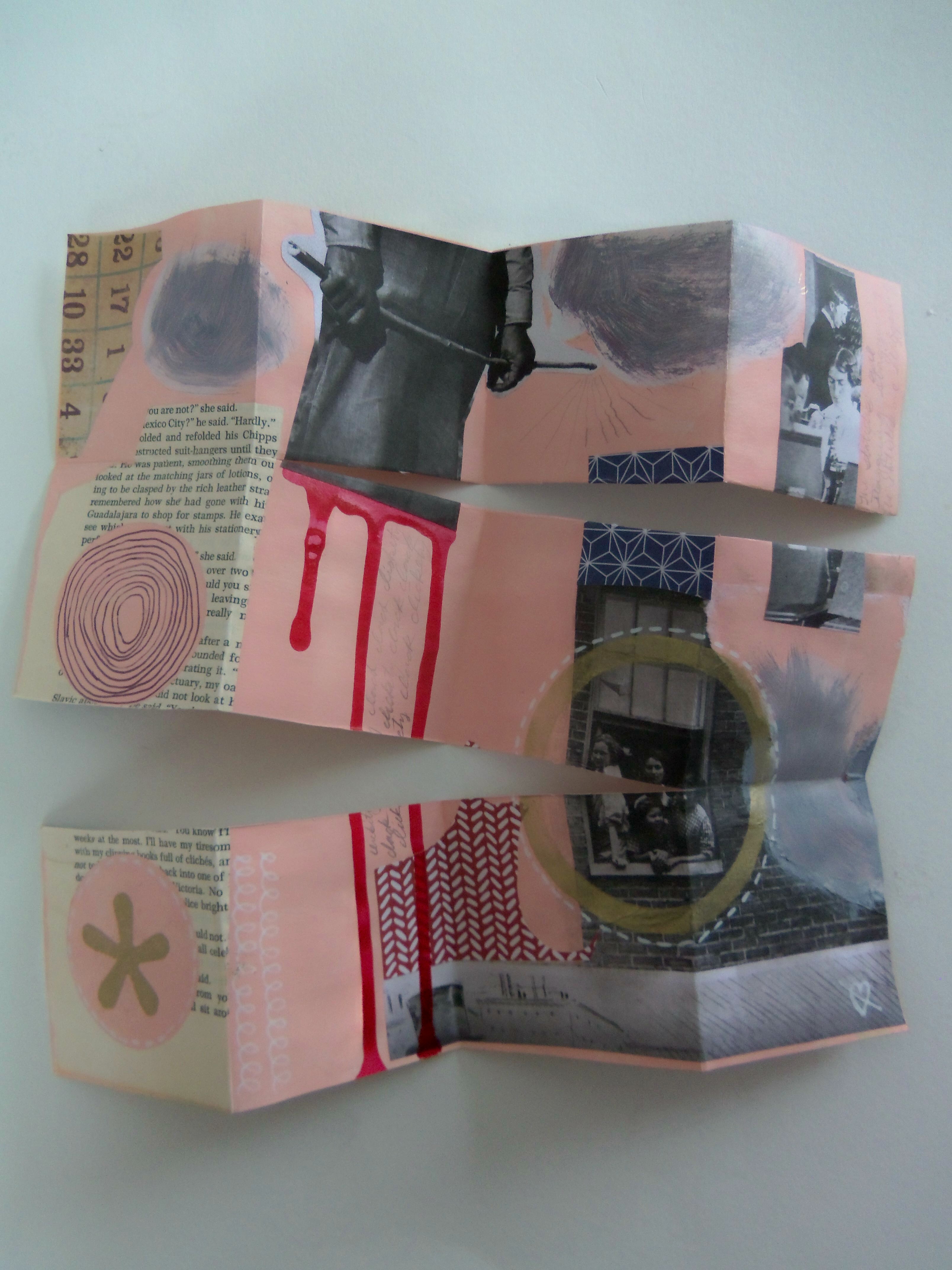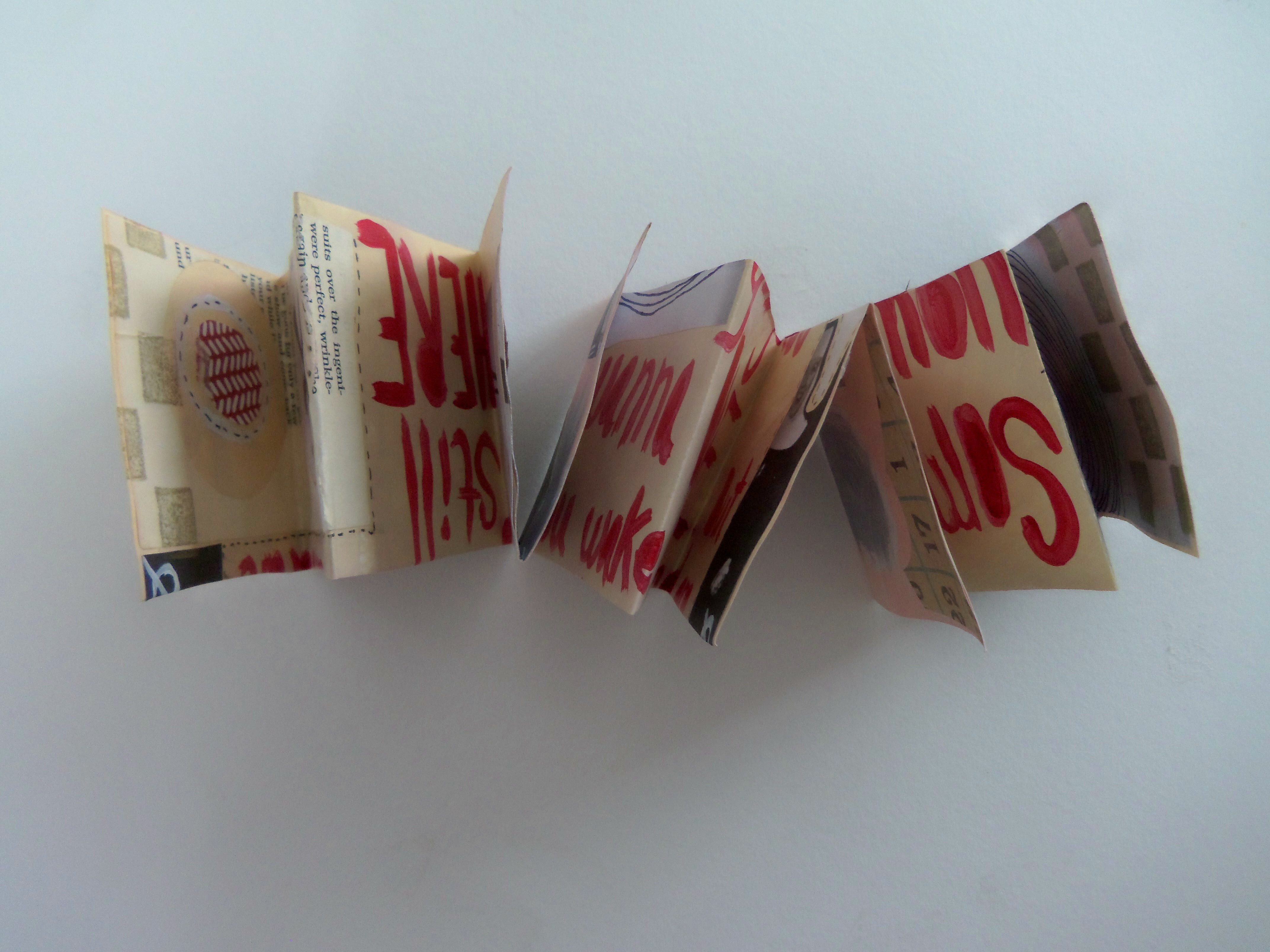 Sometimes You Just Wanna Die, 3"x3" closed, 9"x12" opened, Acrylic, ink, pen, pencil, and collage on recycled paper, 2014