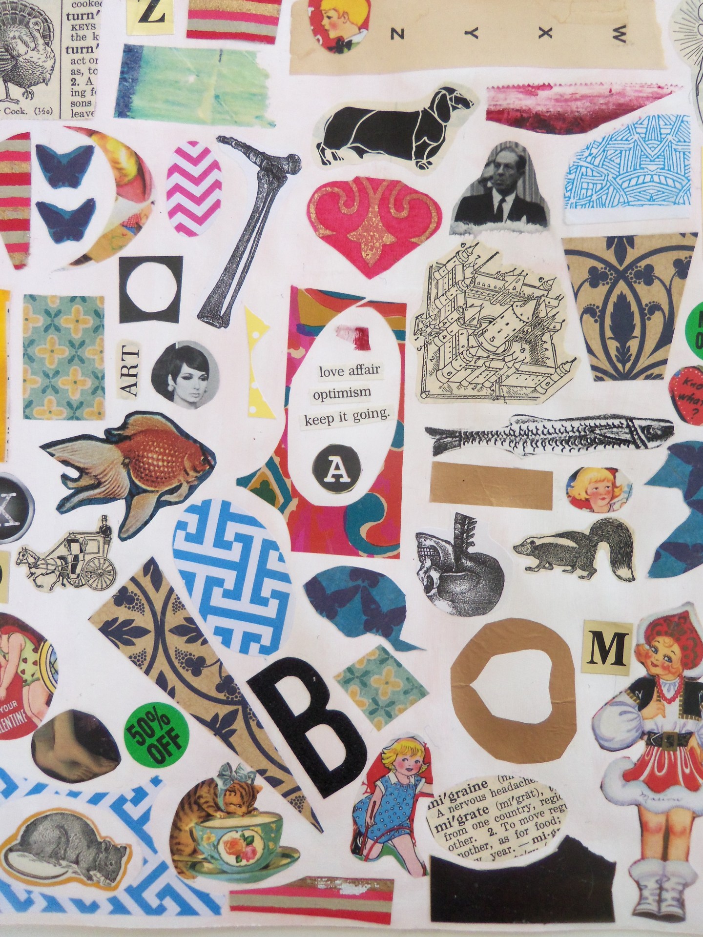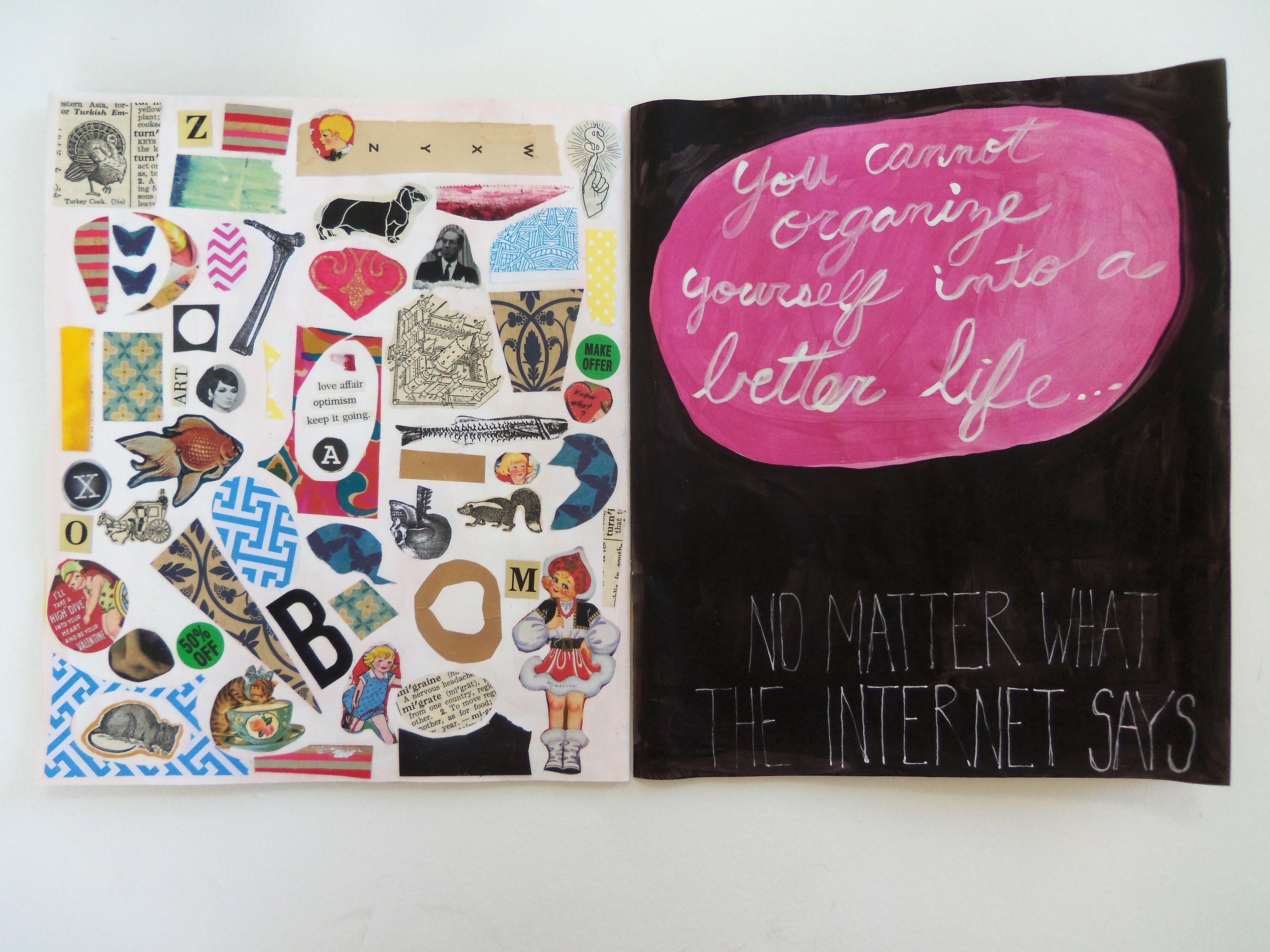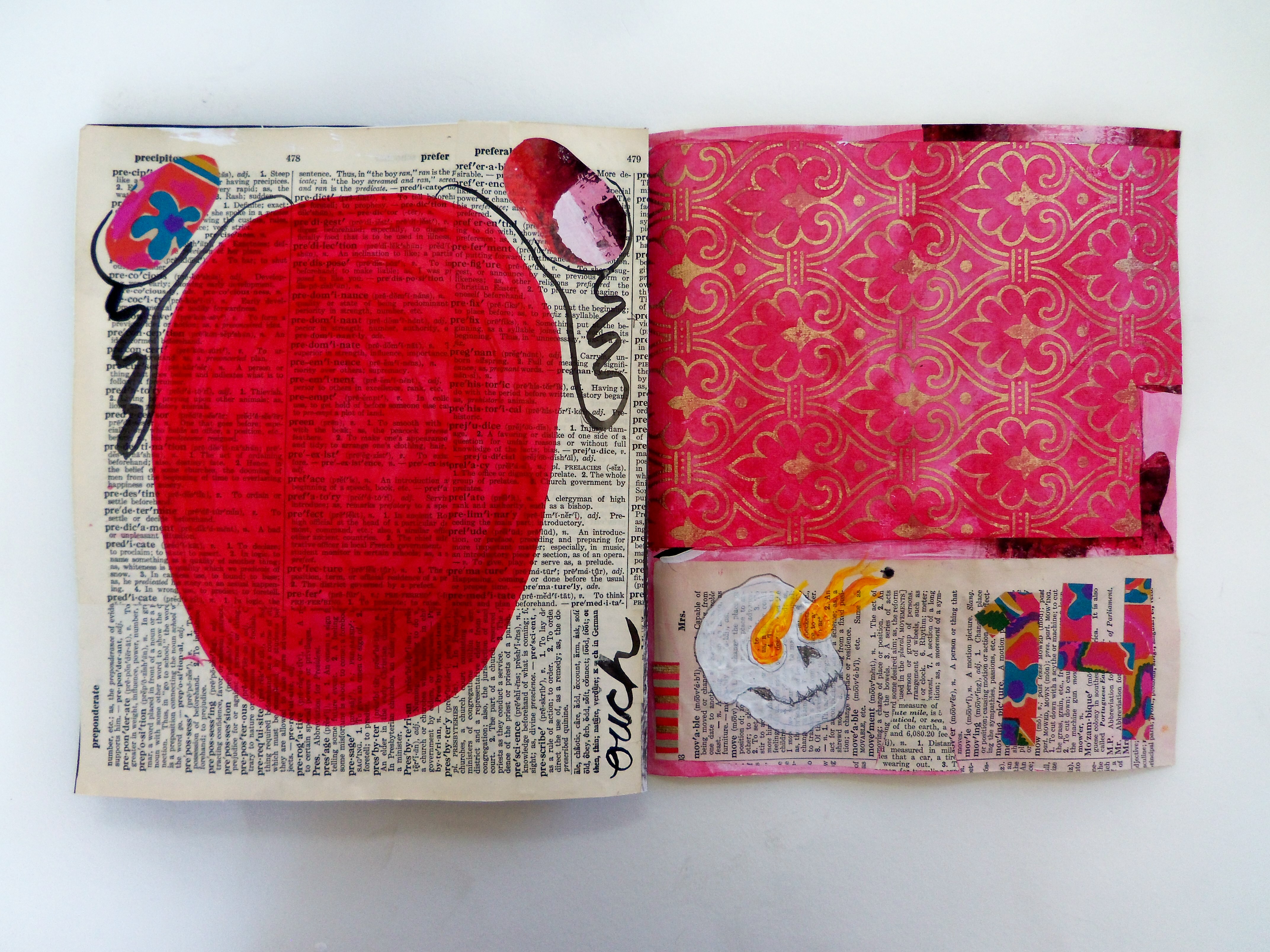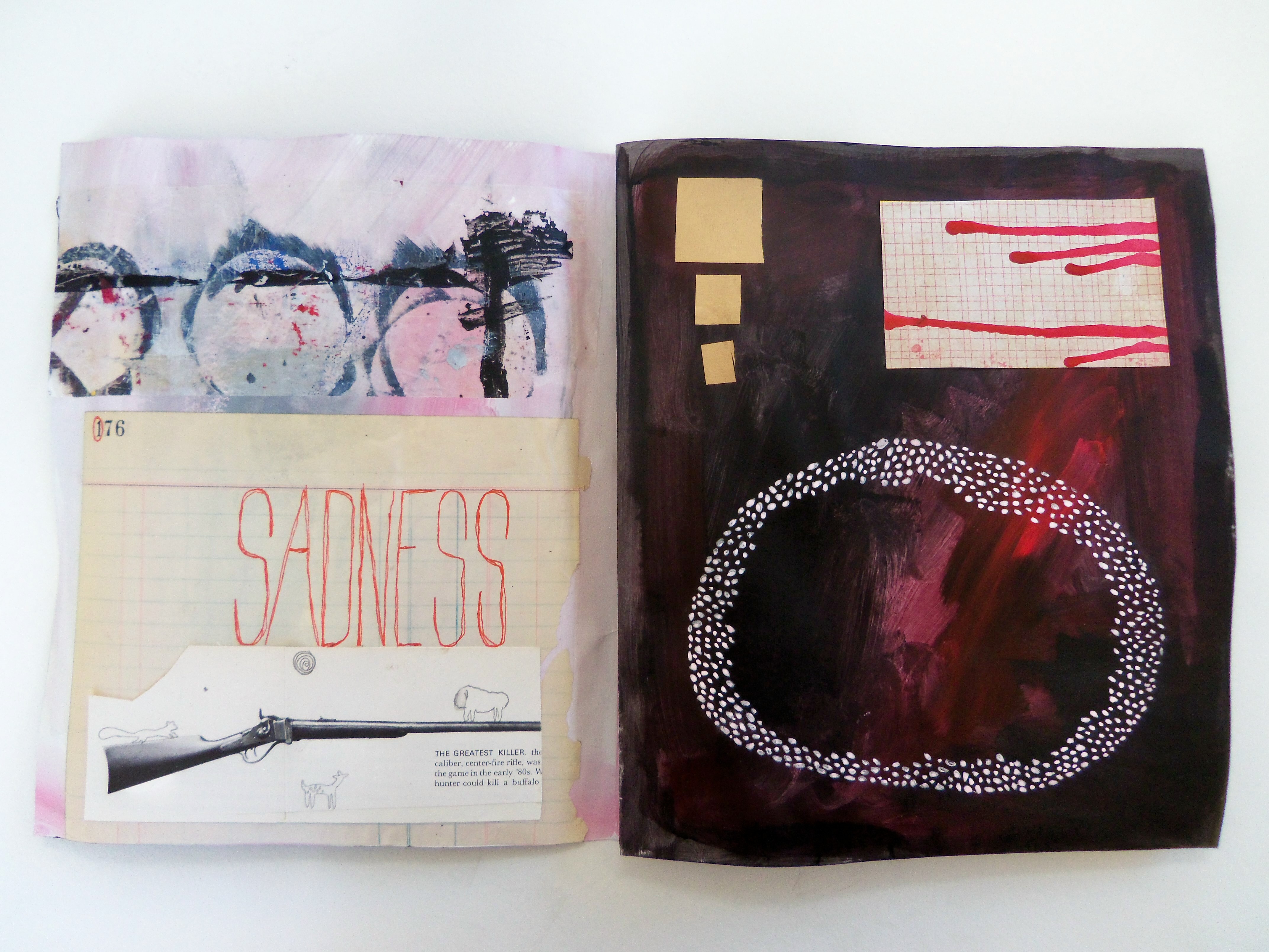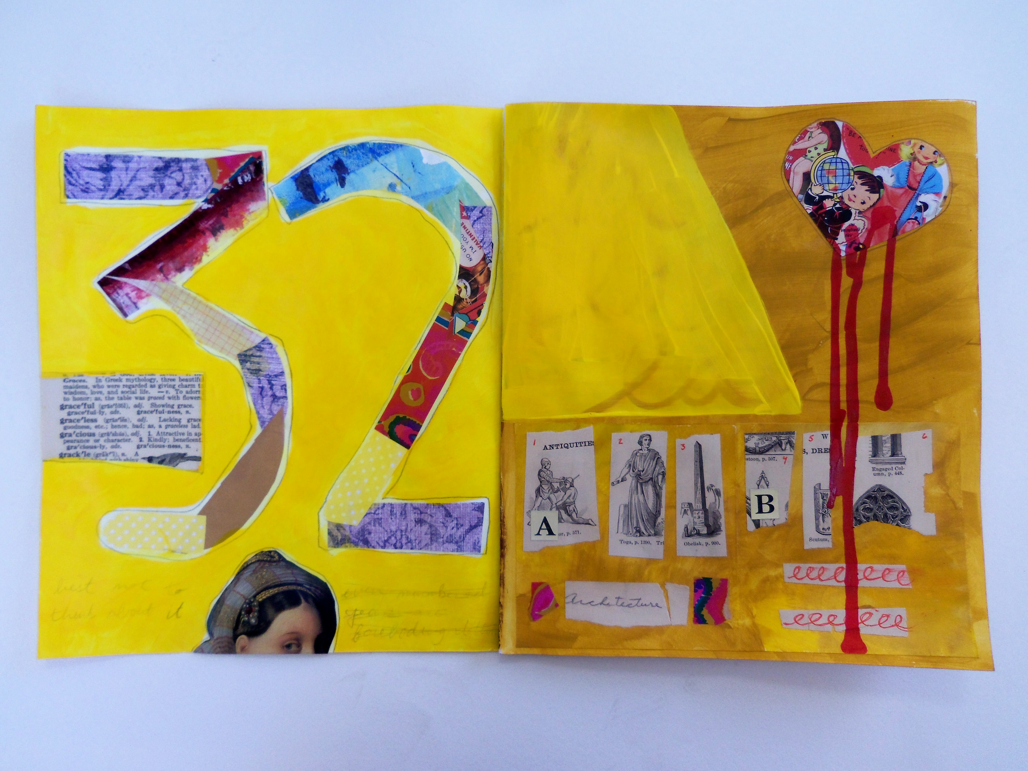 My latest project is a journal of sorts. I really love looking at other artists’ journals, but I have a hard time keeping one myself. It’s difficult for me to keep a visual journal because the finished product is something to be seen by others, and I just don’t know if I want people seeing my personal stuff. The journal I’m working on now is somewhat personal, but I’m keeping it mostly cryptic so as not to expose myself.
