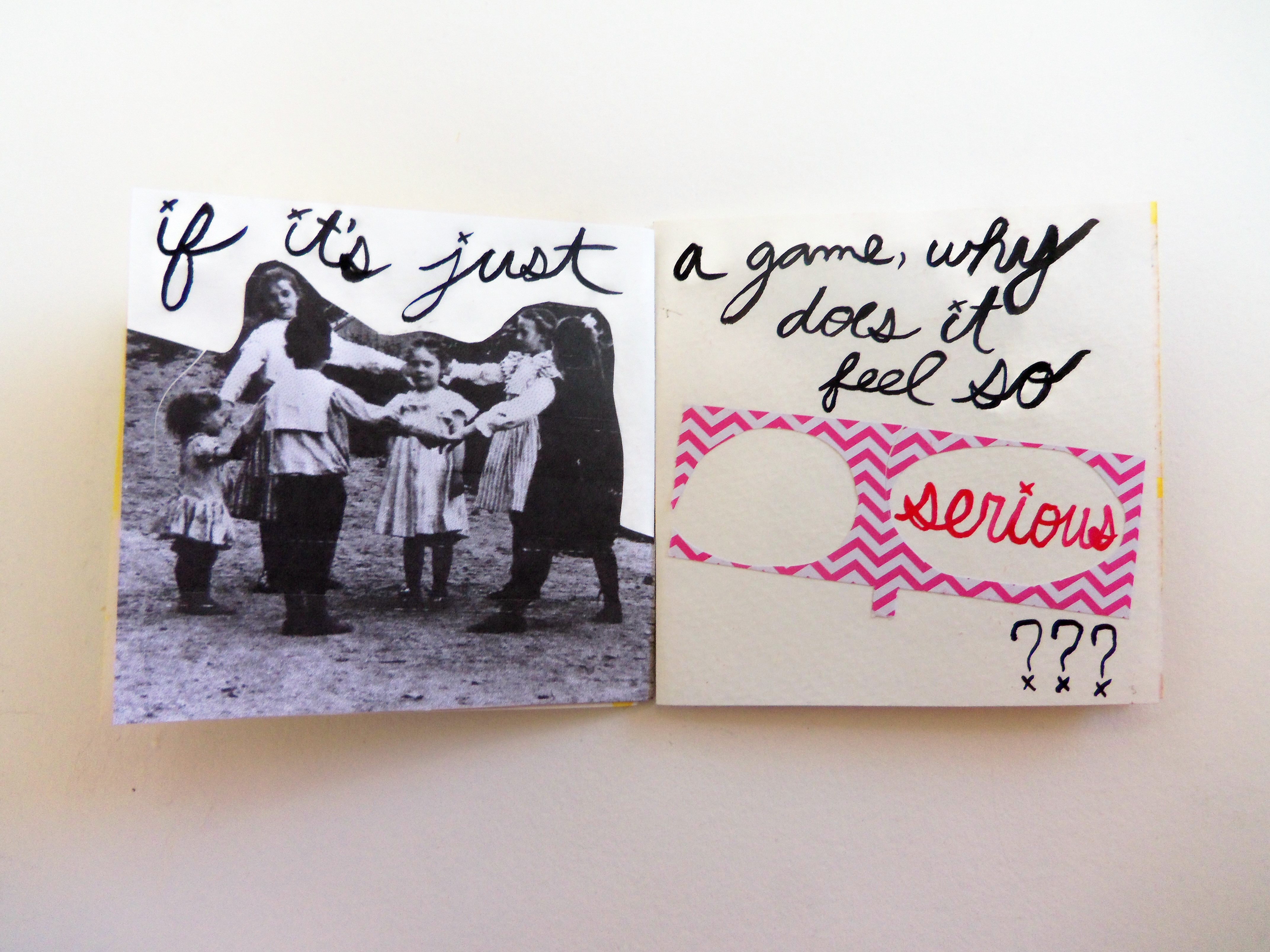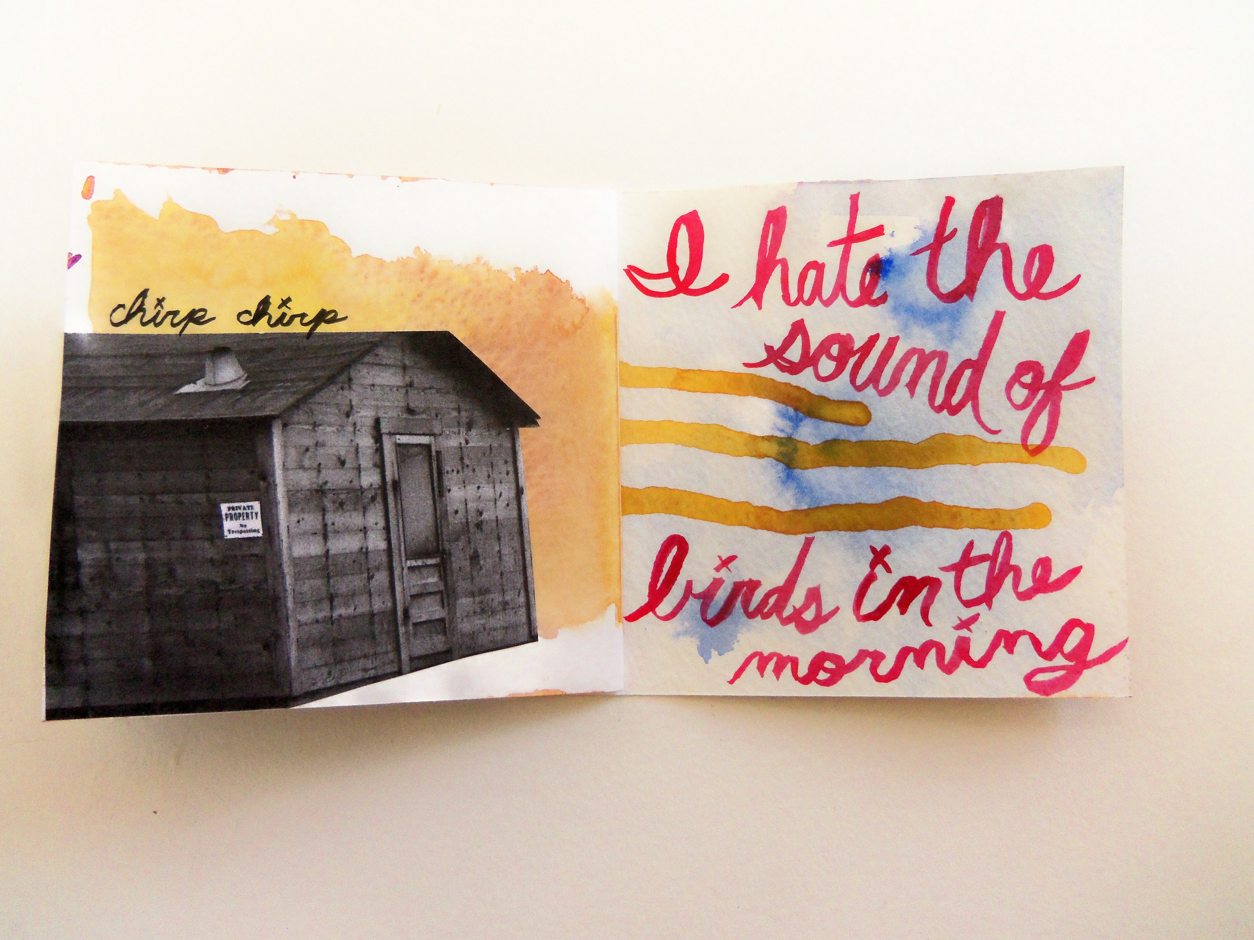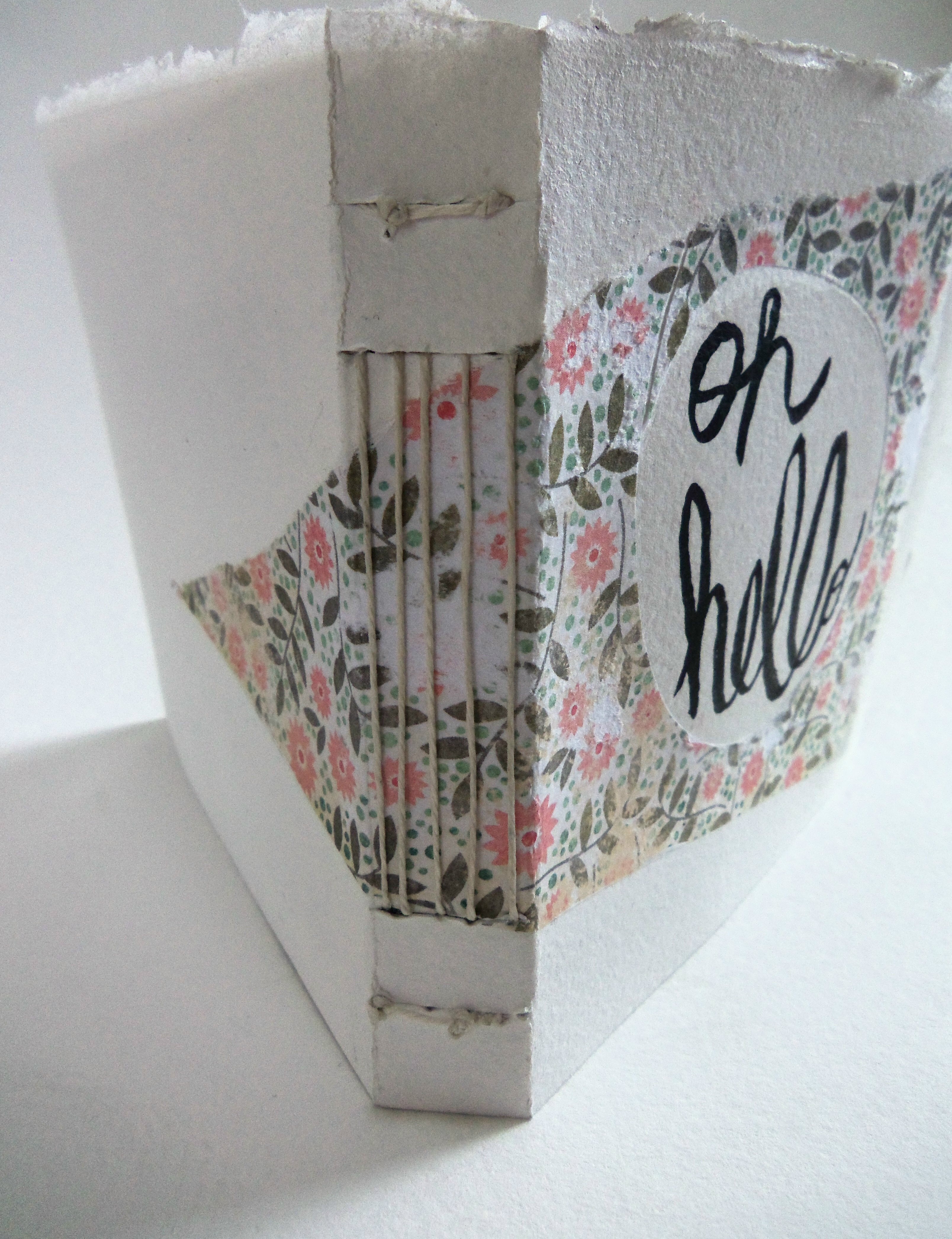 Oh, Hello, 4.75x4.75, Handmade Book with Exposed Stitch Binding, Watercolor, Acrylic Ink, Decorative Paper, Collage, Hemp Cord, 2014