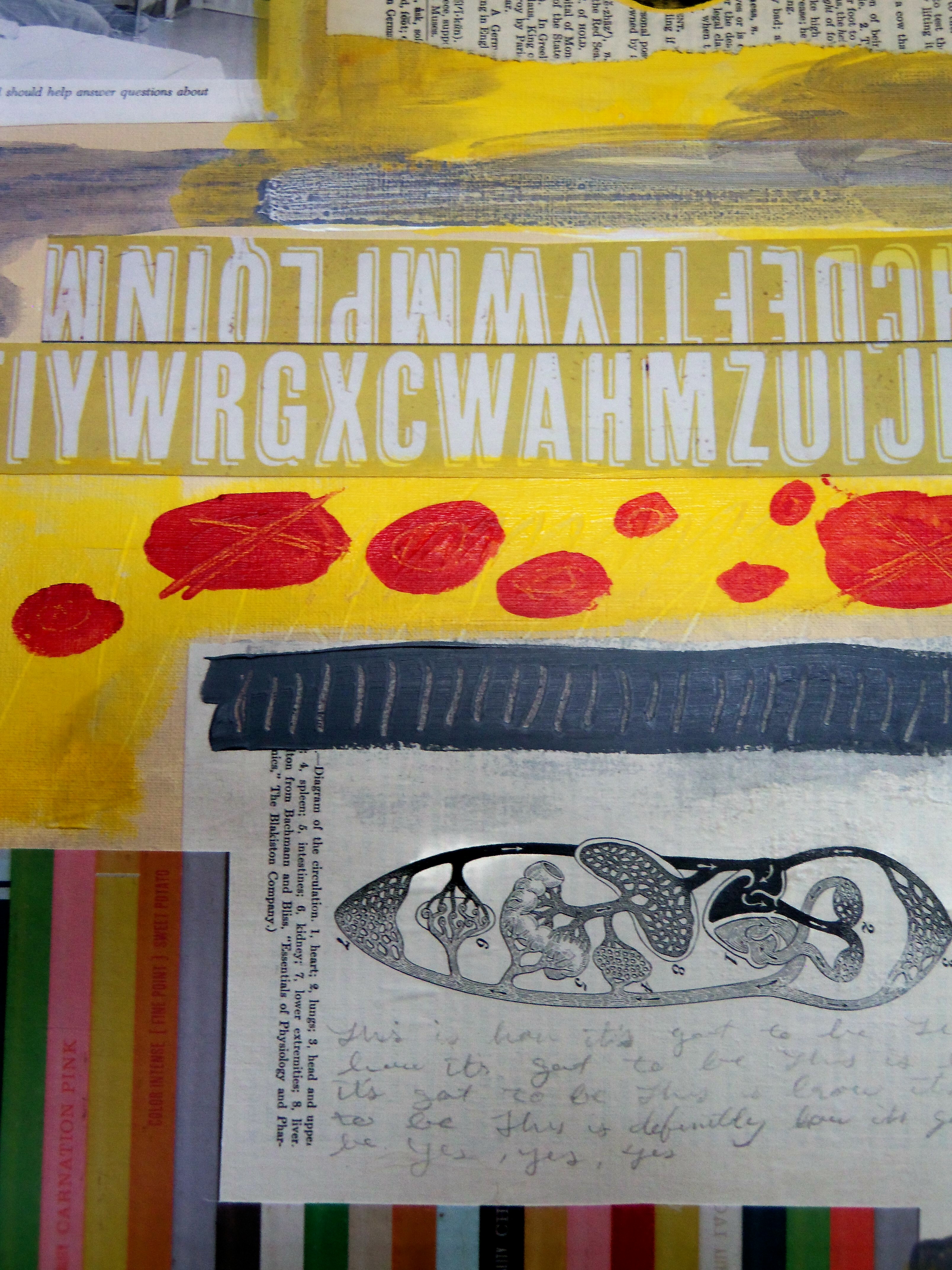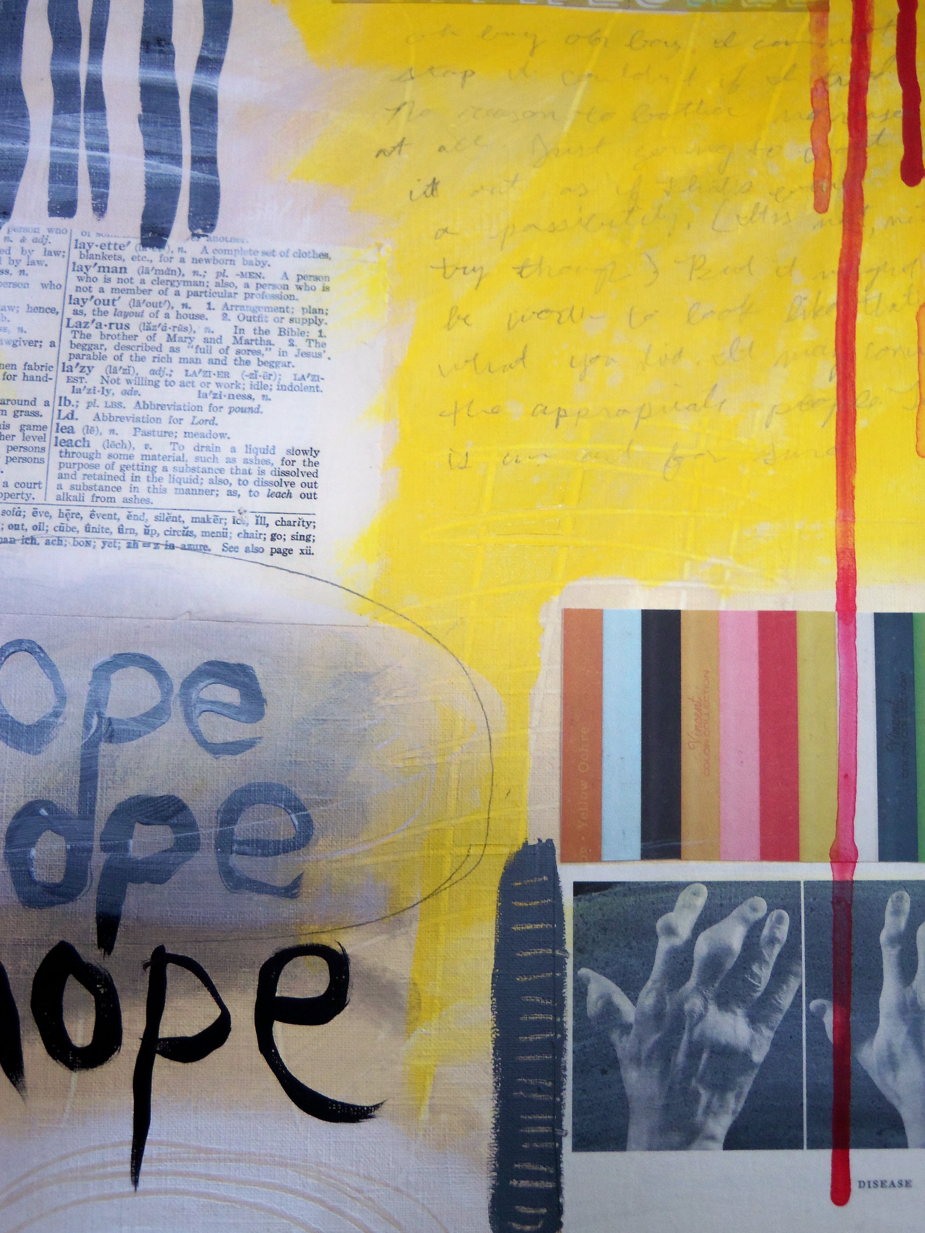 I have the three panels of my collage finished. Now all I have to do is figure out how to frame the work. I’ve seen collages framed behind glass and others framed without. I’m inclined to forego the glass. When I get the framing complete, I’ll share with you the finished product.