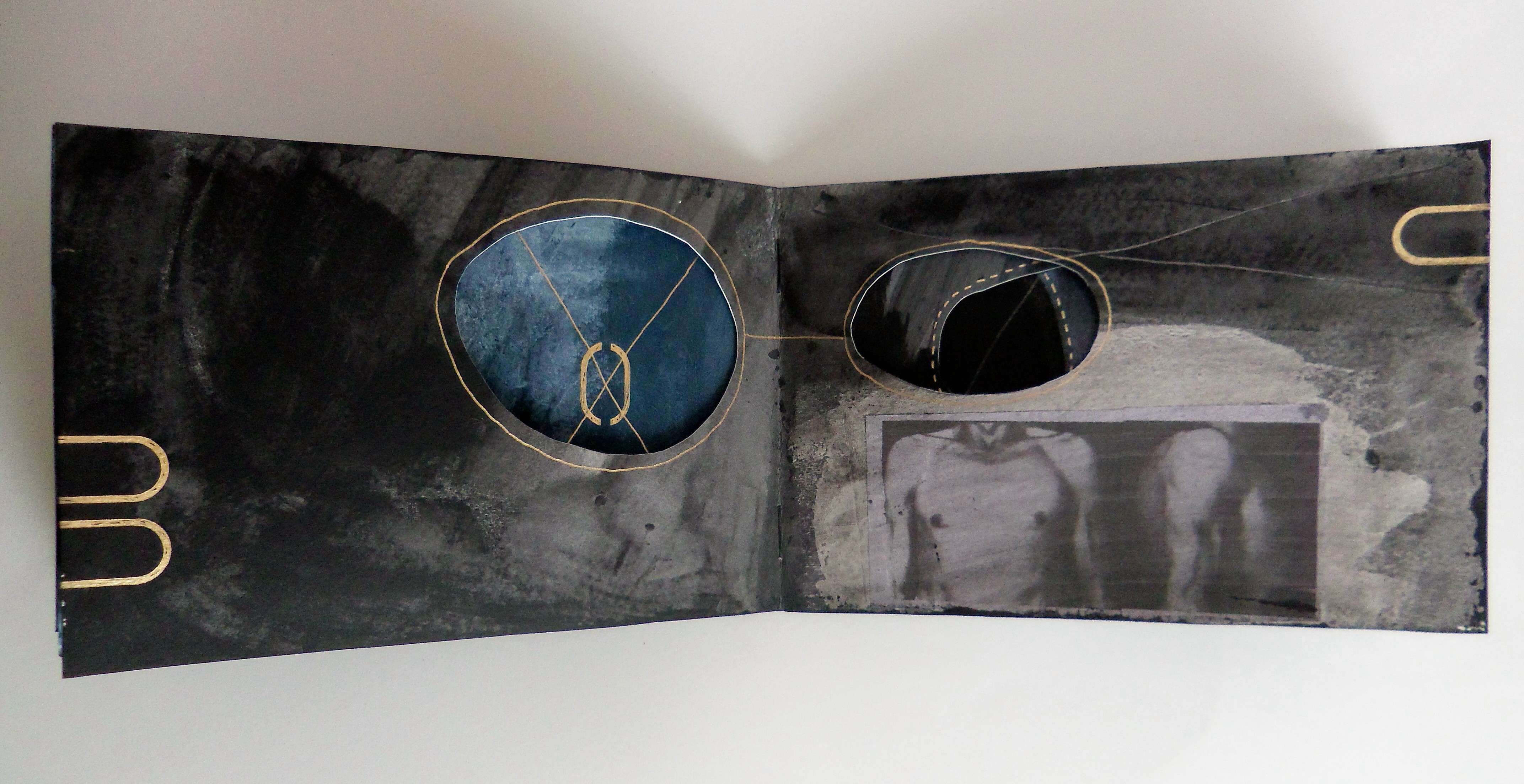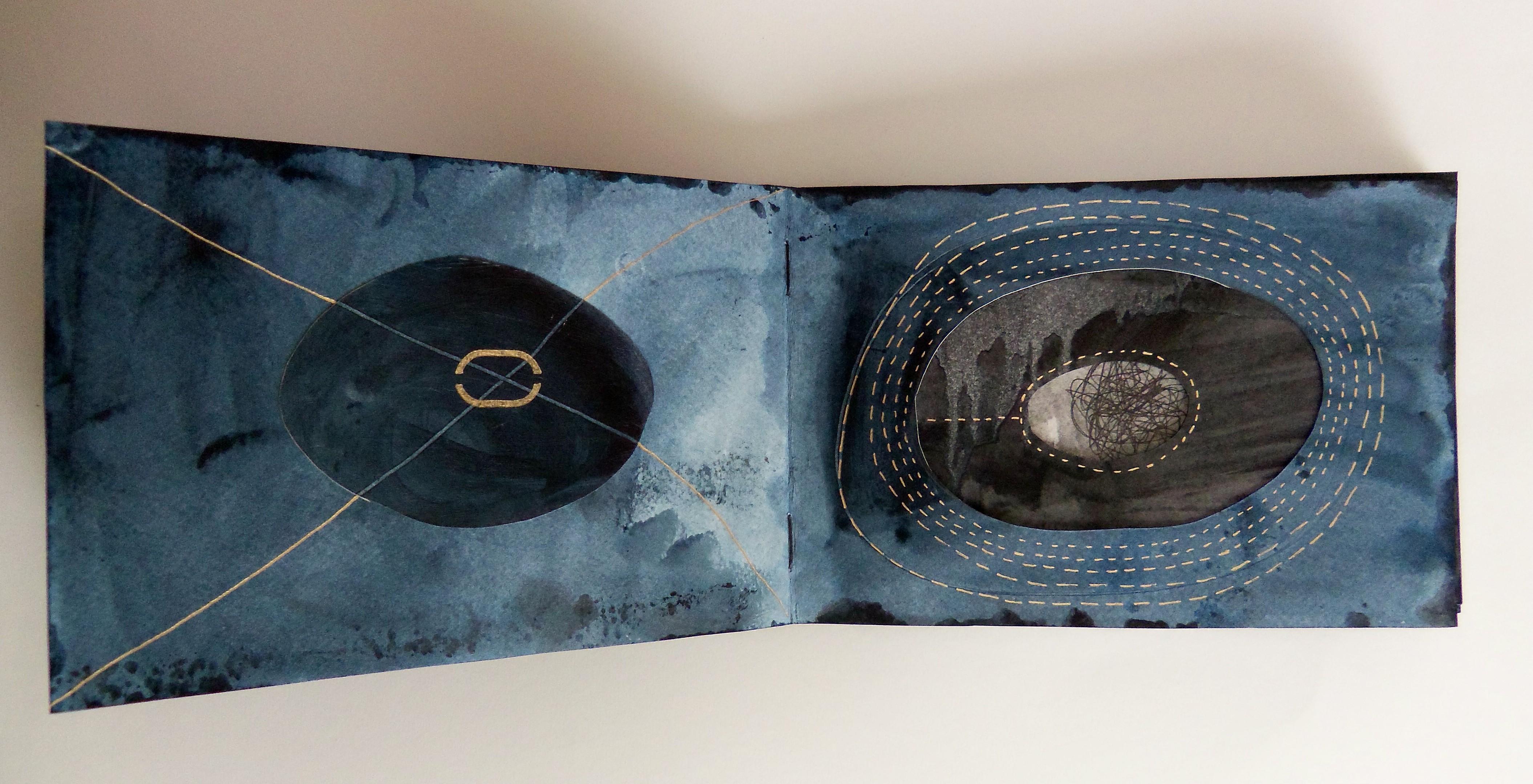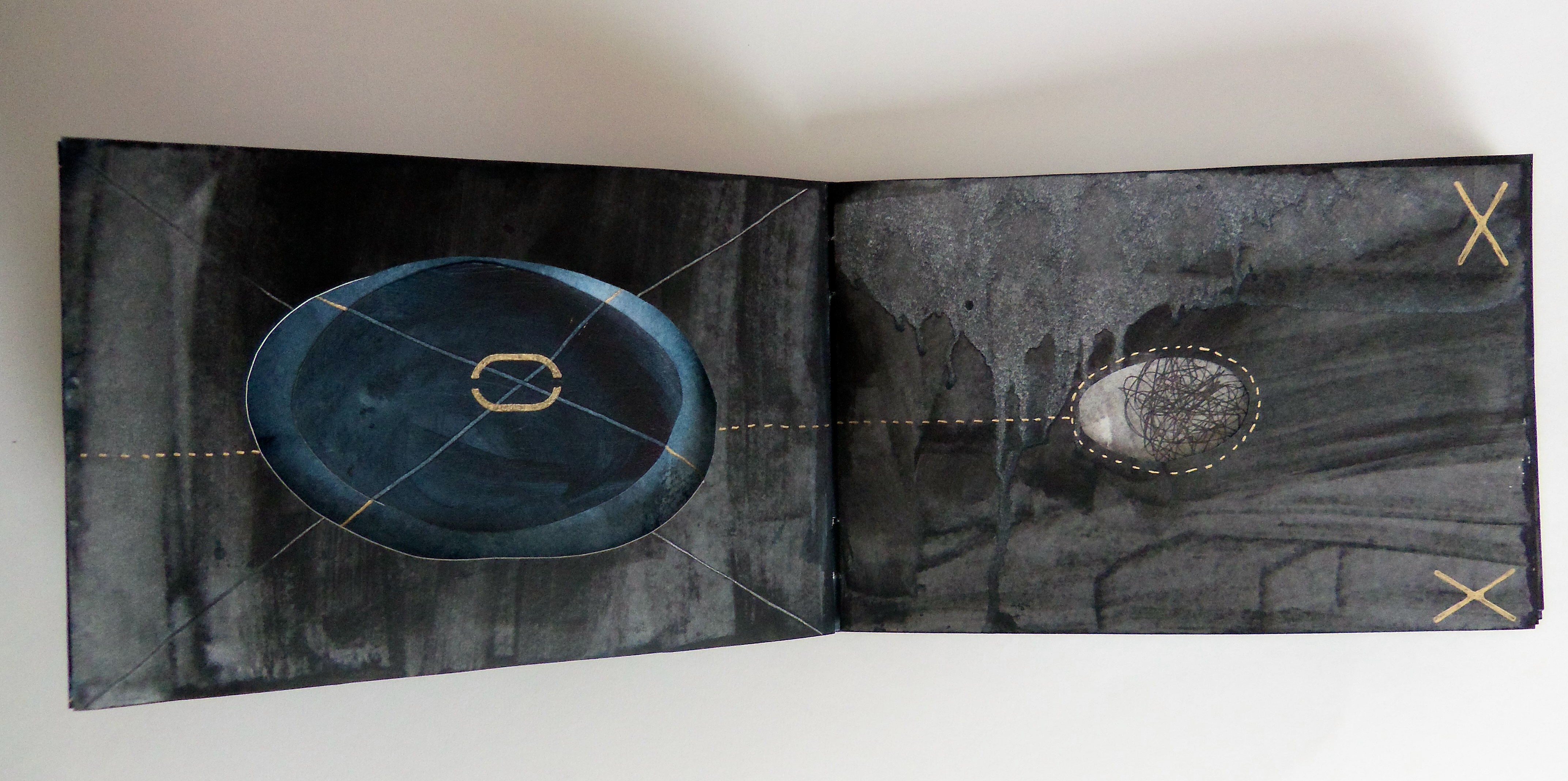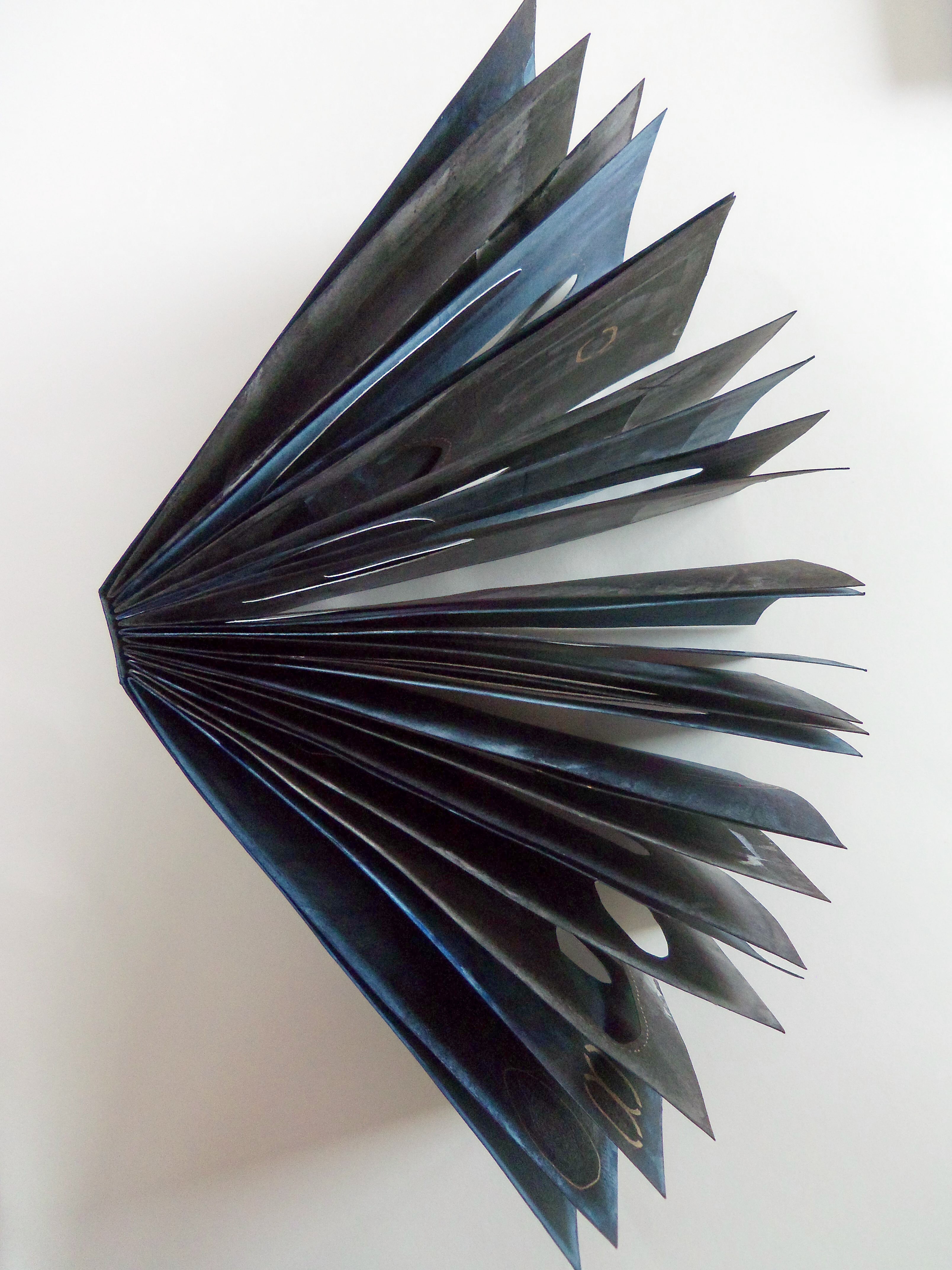 This week I finished a book that has been several months in the making. Back in November I cut, folded, and painted the pages and cover. I really liked the feel and color of the pages, but I wasn’t sure what to add for content. Last week I finally had an idea for the work, and I really love the finished piece. This book is larger than what I typically create, and I love the weight of it my hands.