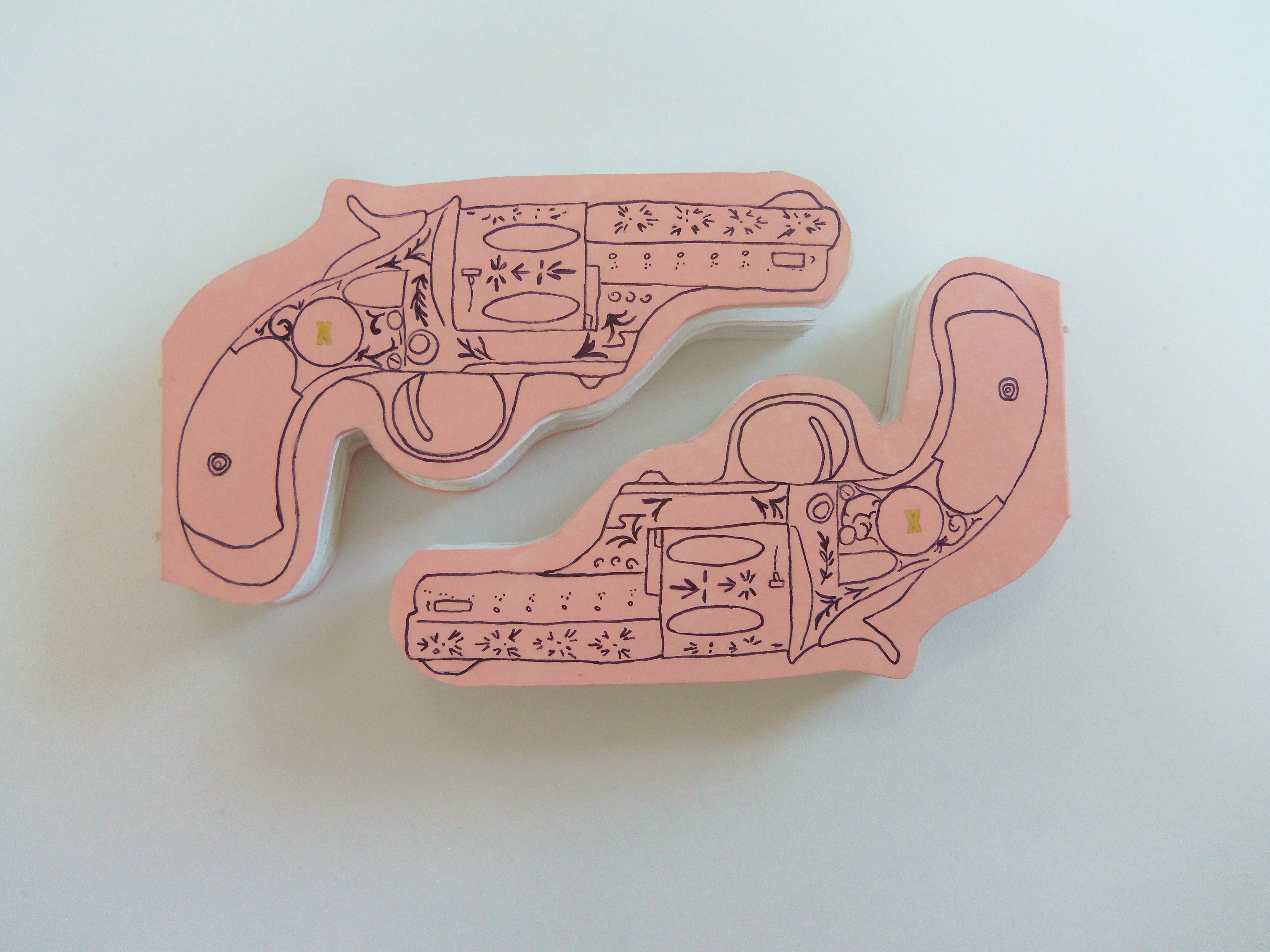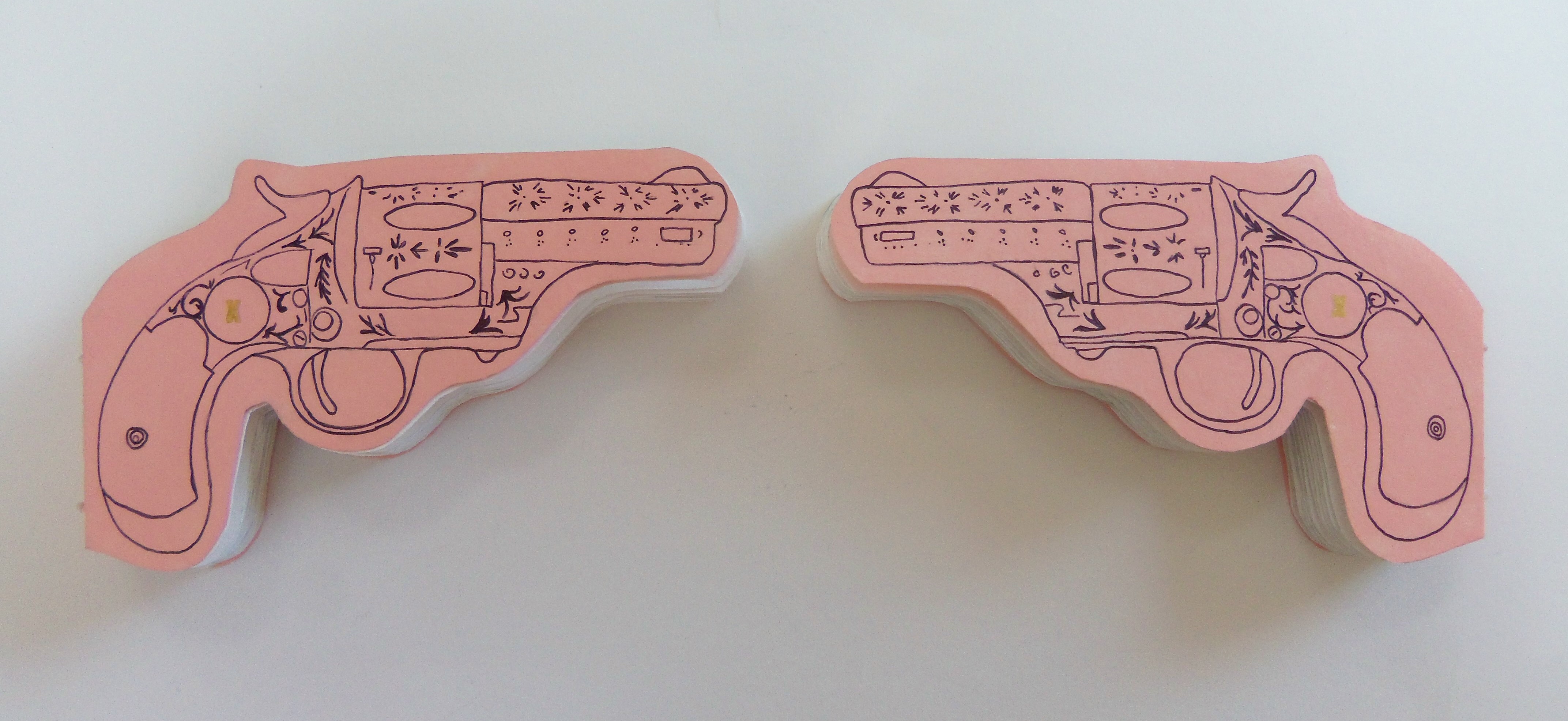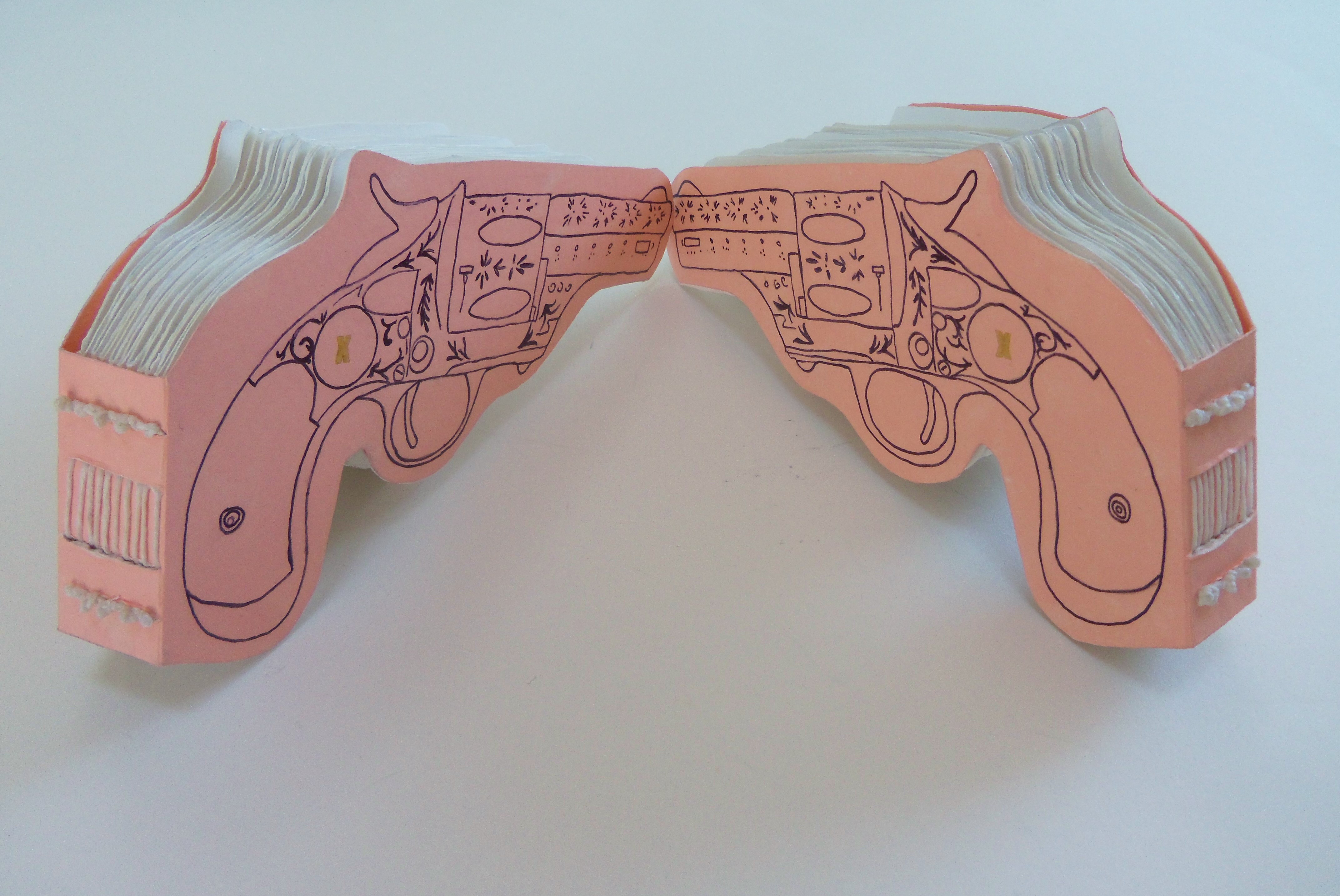 A couple of months ago I had an idea to create two gun-shaped books. I thought, “Yeah, that will be easy and fun!” I love the finished product, but damn, they were NOT easy to make.