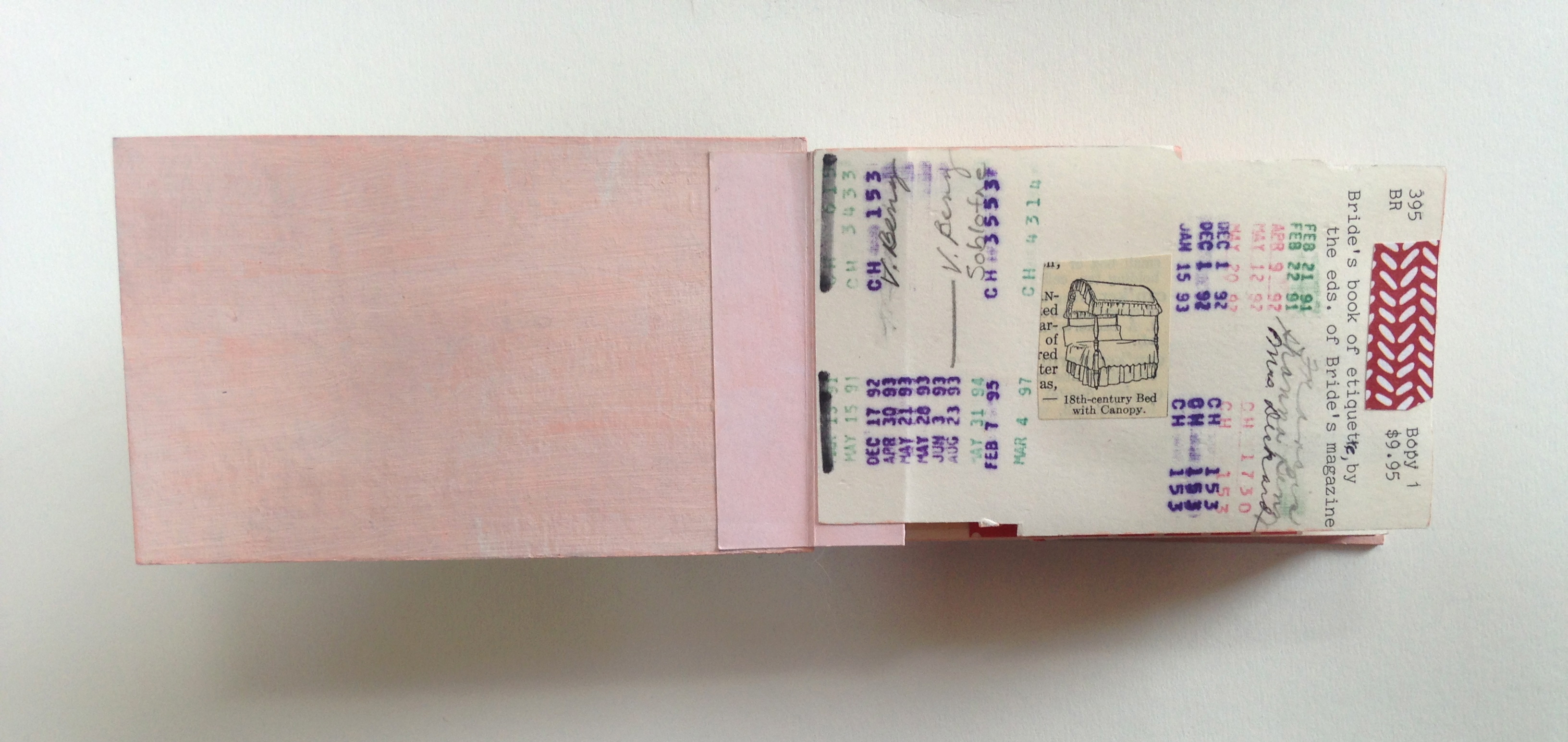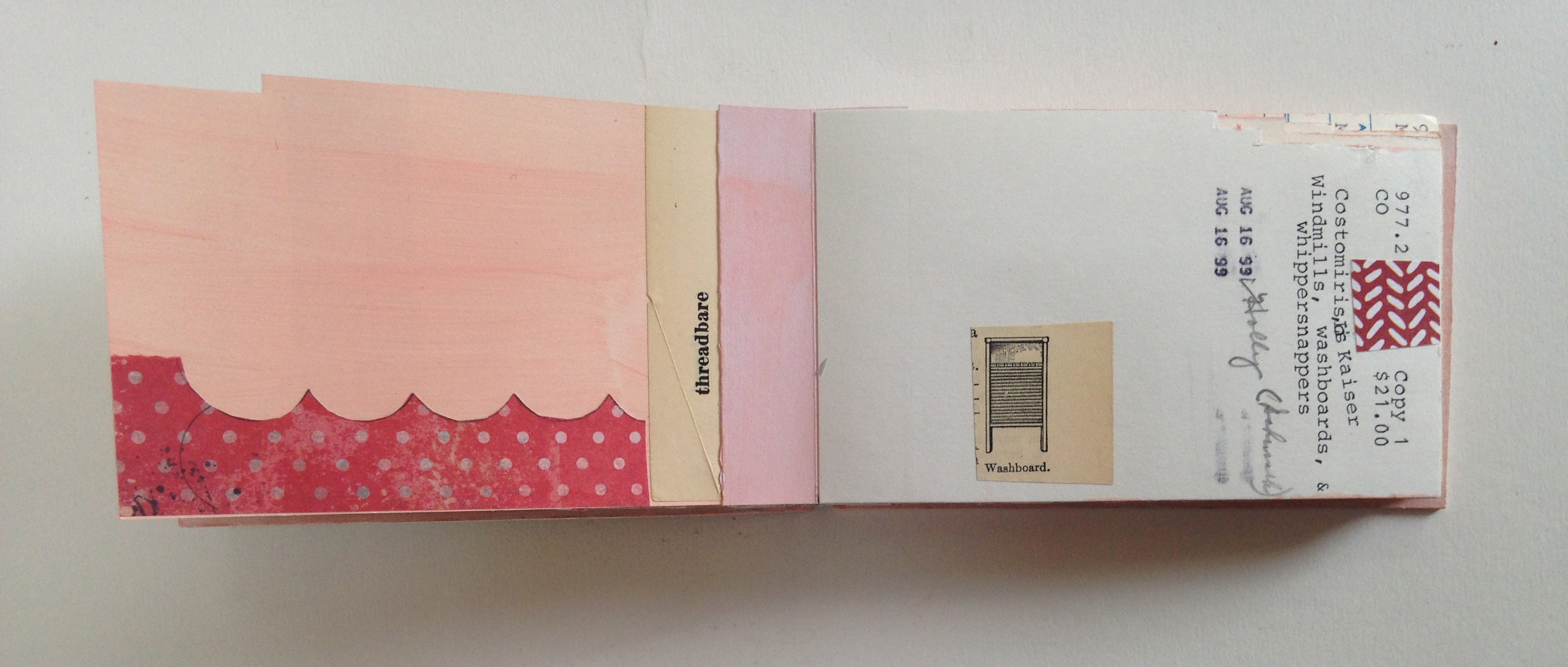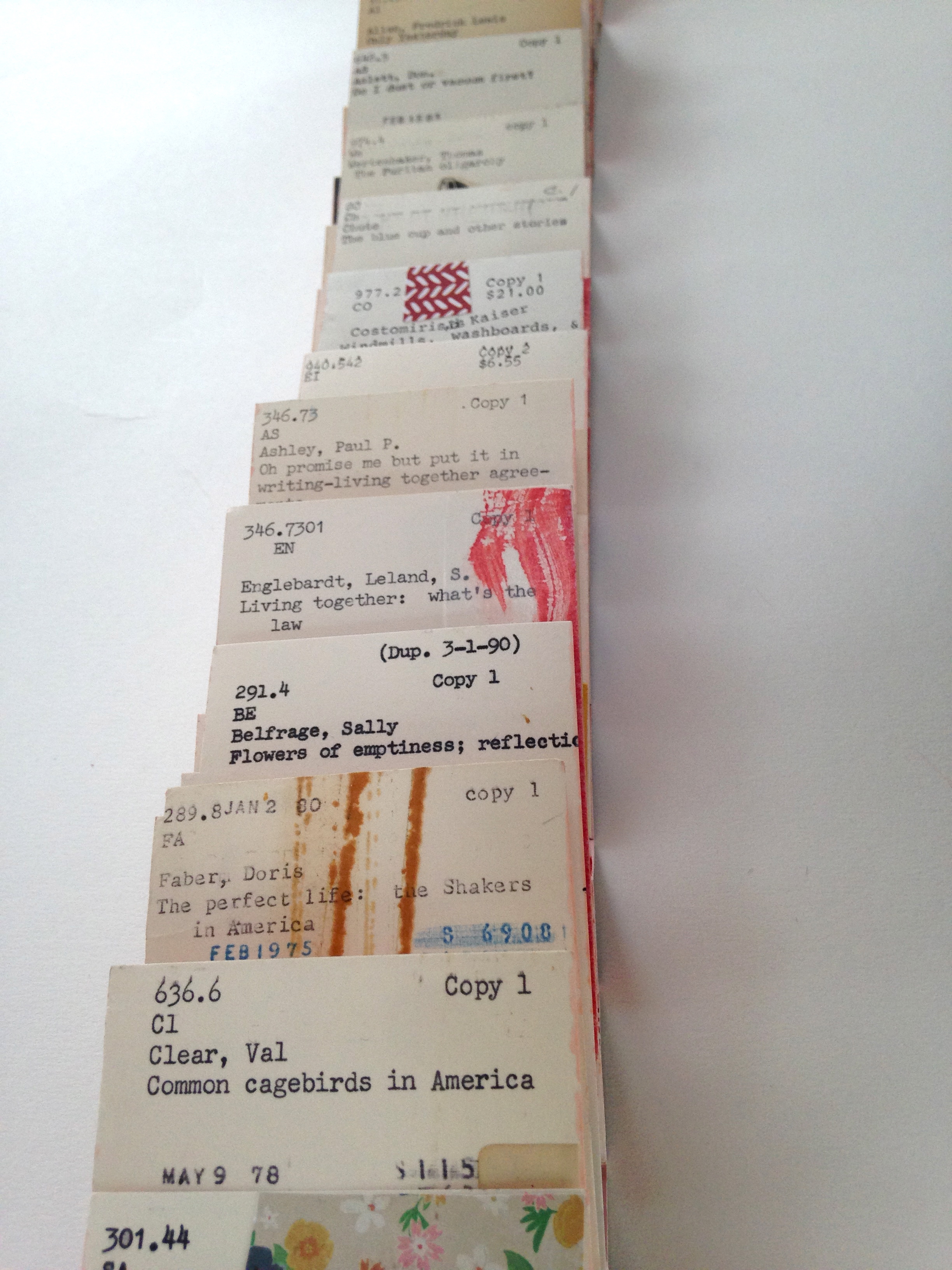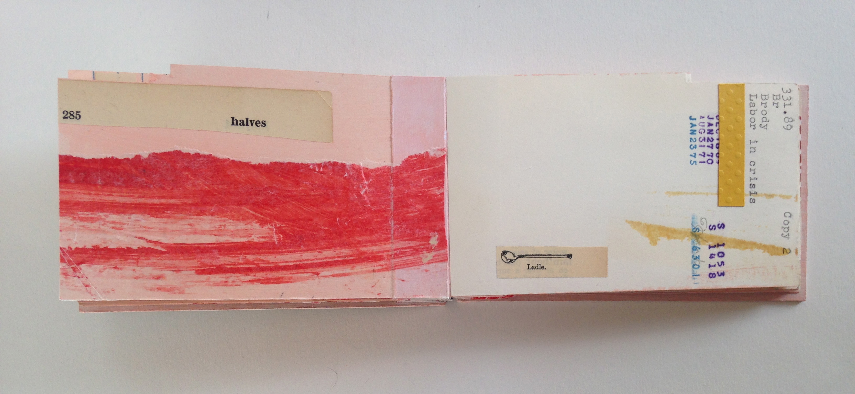 The Take Care Blues is a single row flag book made with 33 reclaimed library cards. I made this book in response to the overwhelming sadness that can accompany those who take care of homes, people, and relationships.