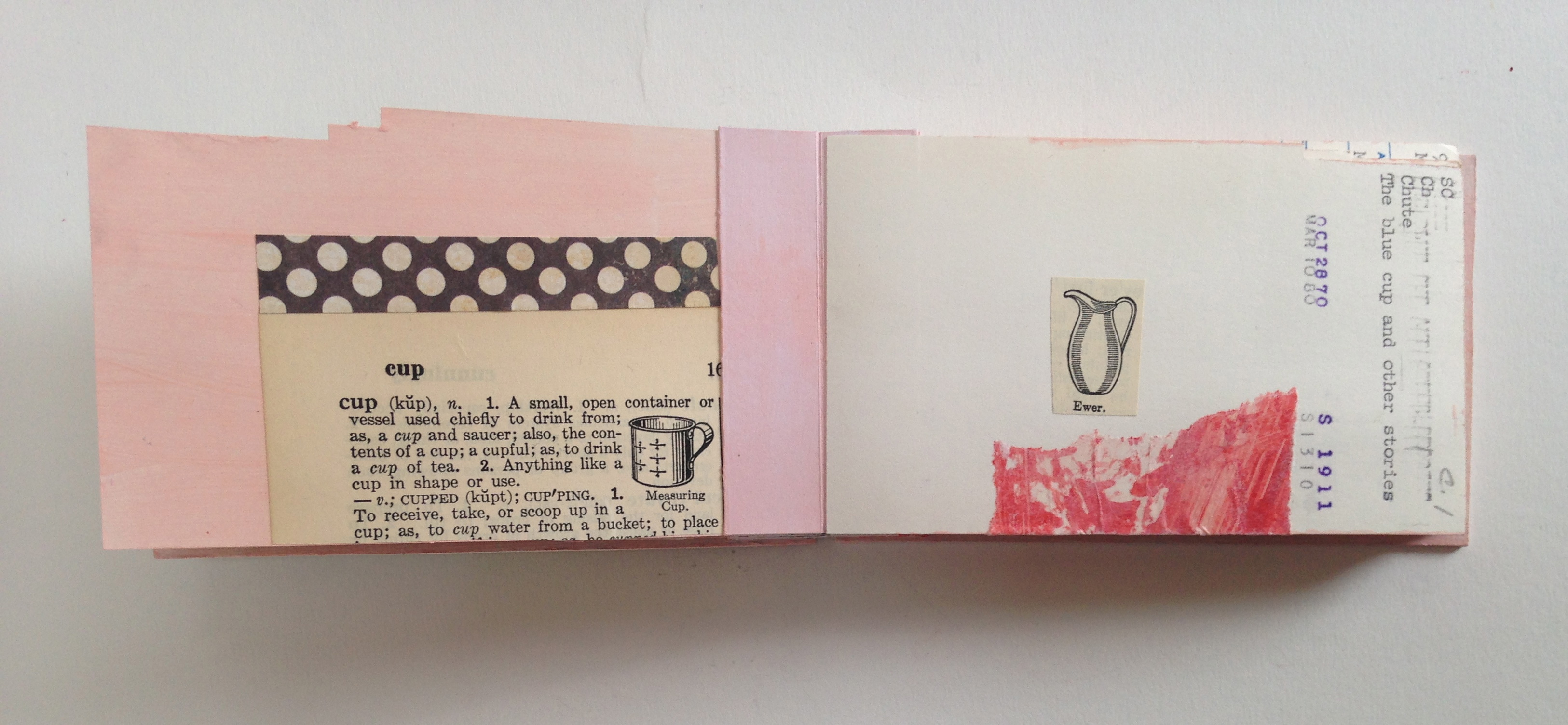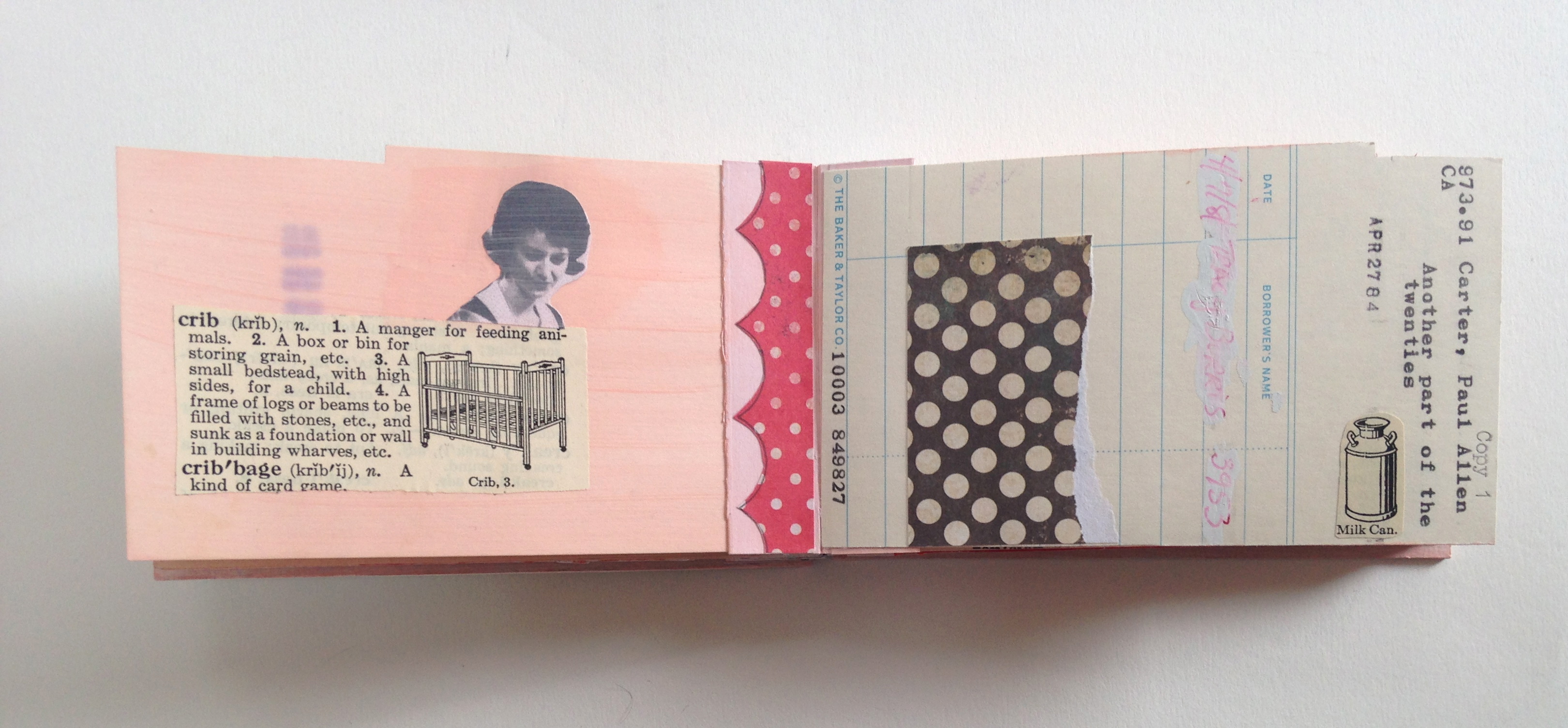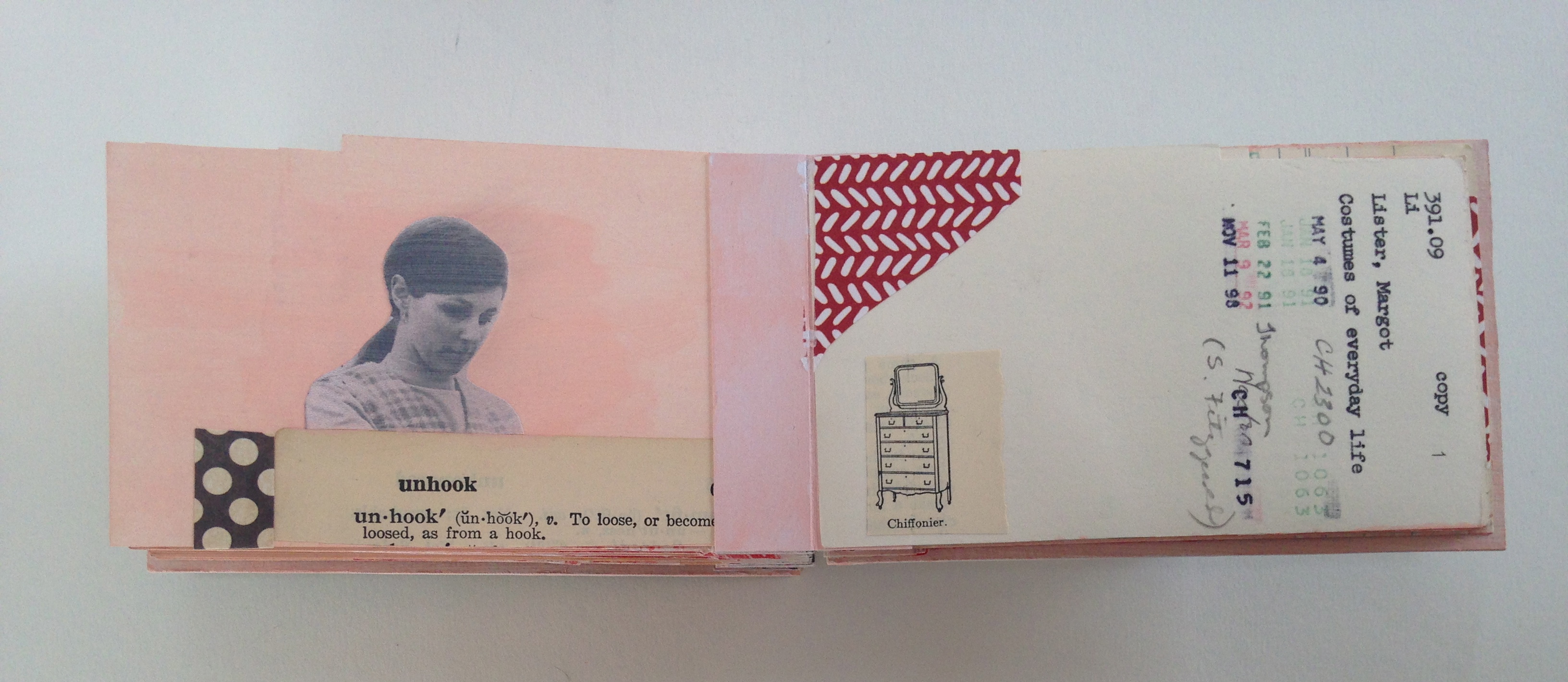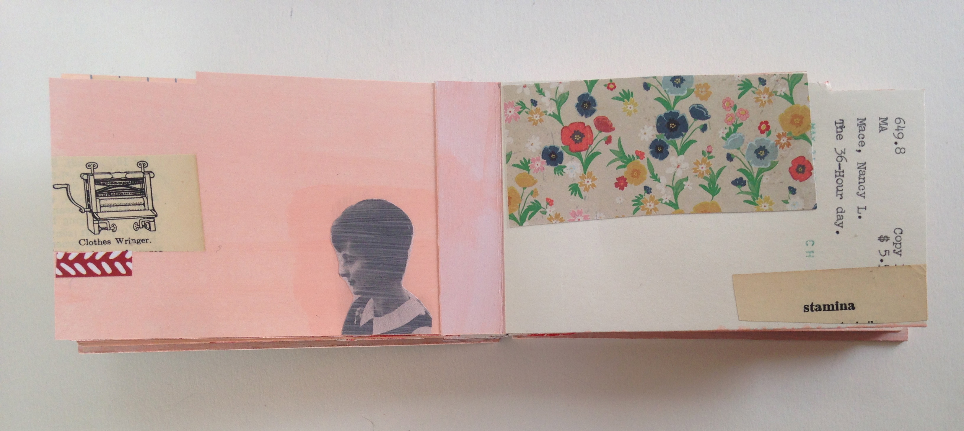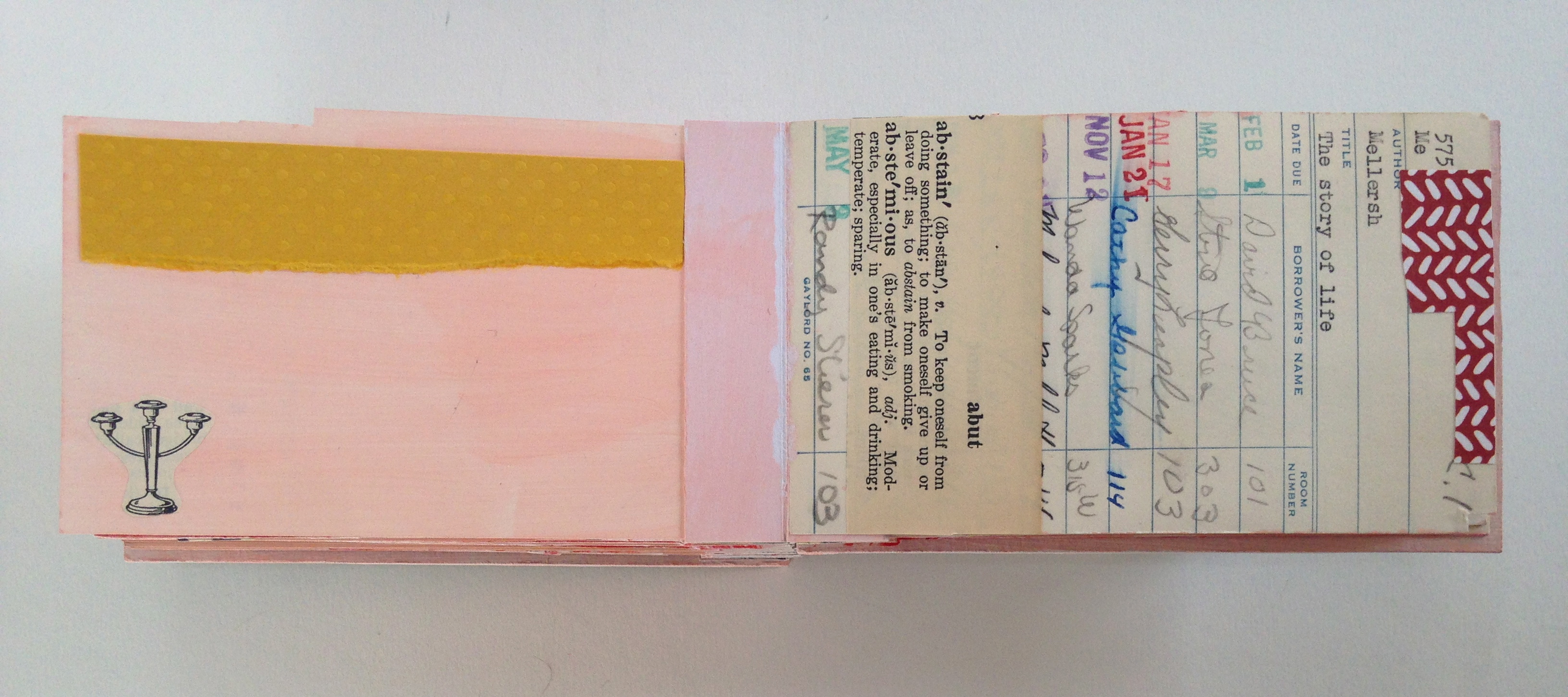 The Take Care Blues is a single row flag book made with 33 reclaimed library cards. I made this book in response to the overwhelming sadness that can accompany those who take care of homes, people, and relationships.