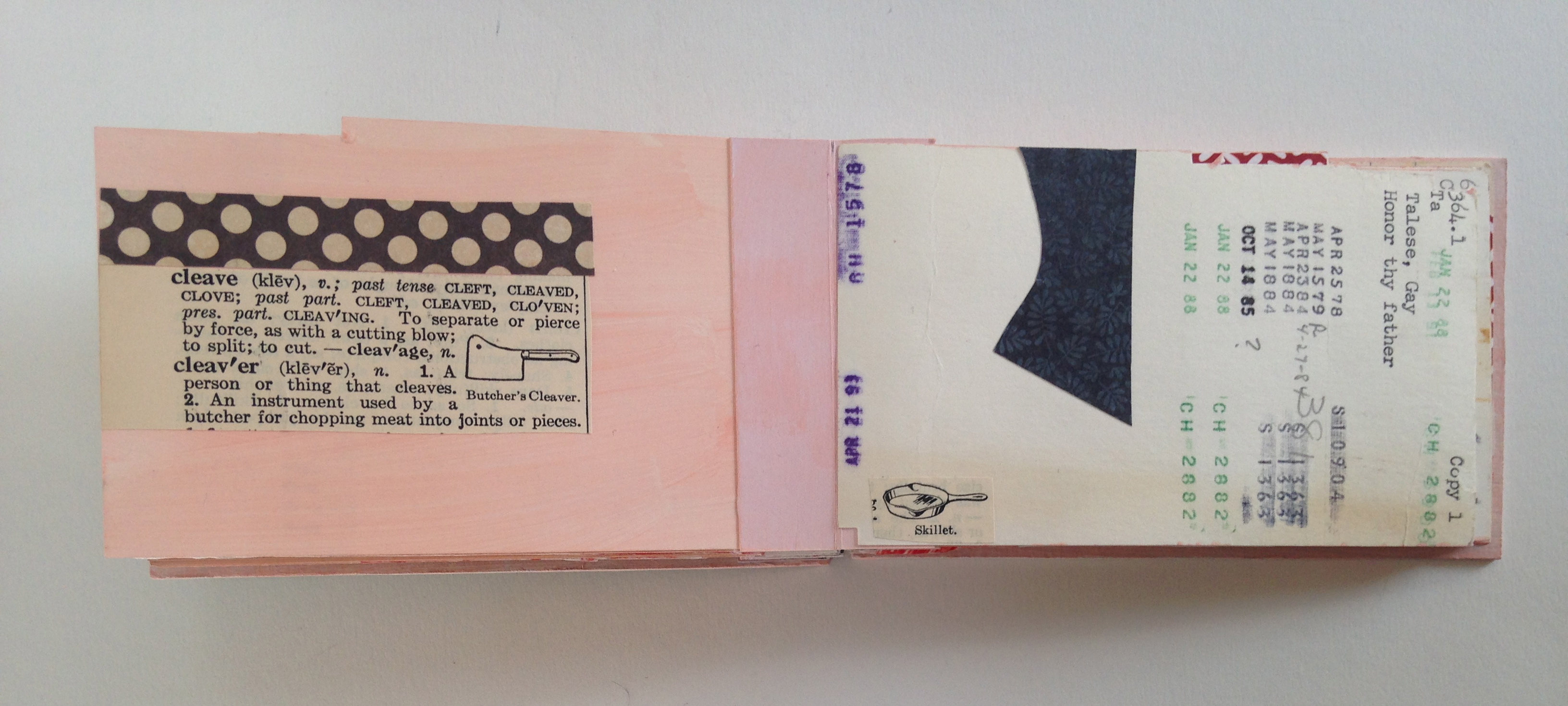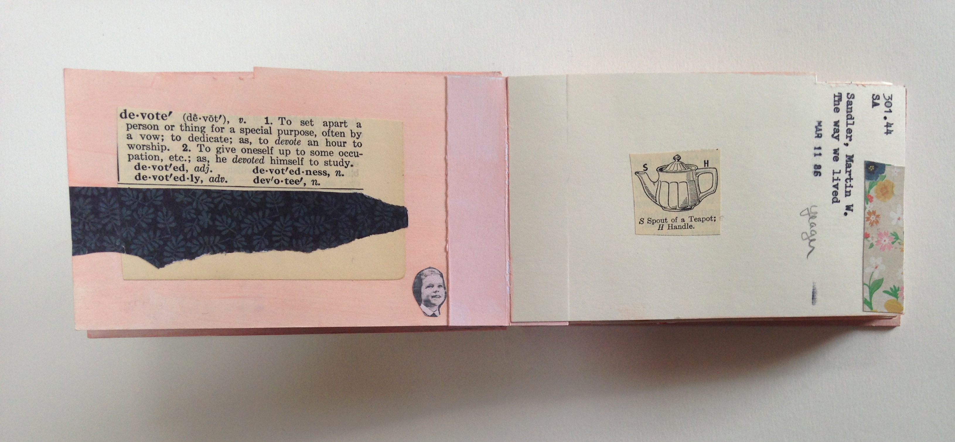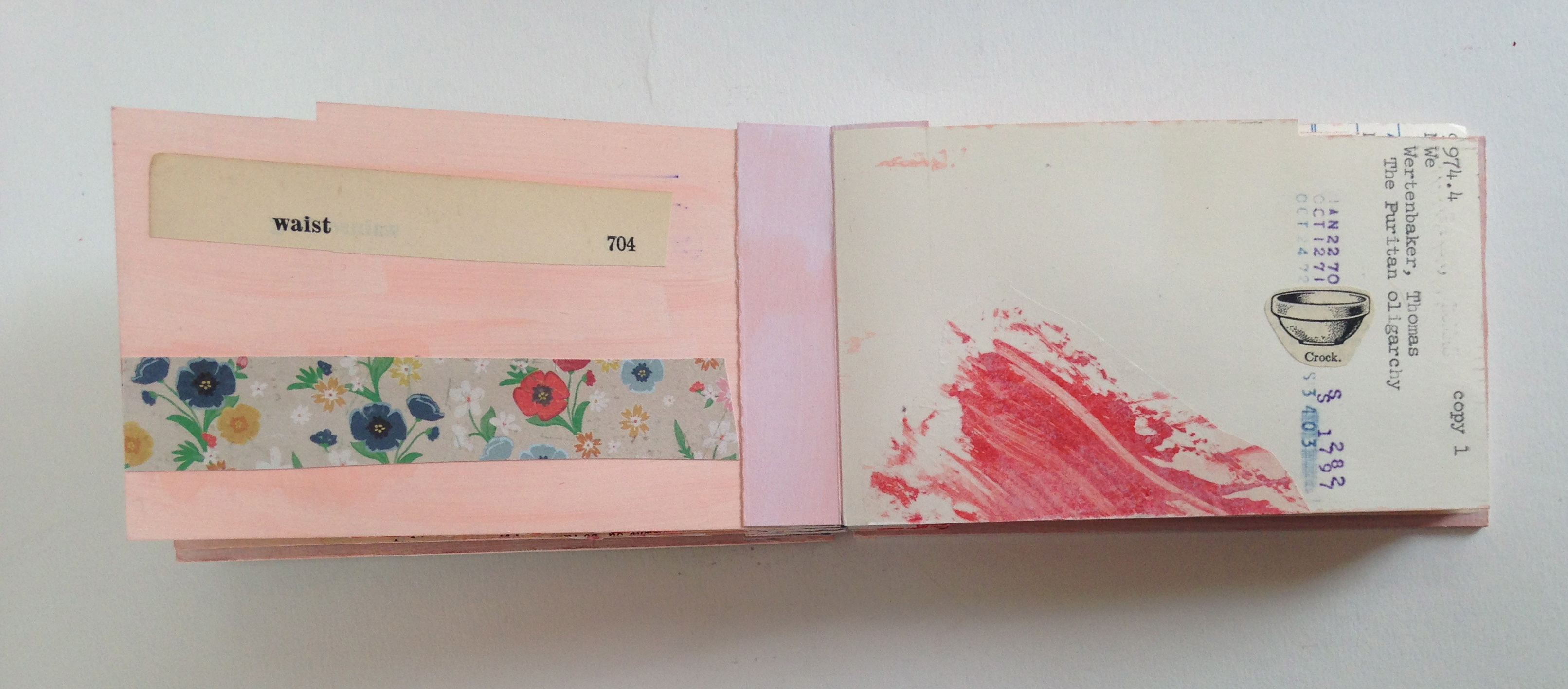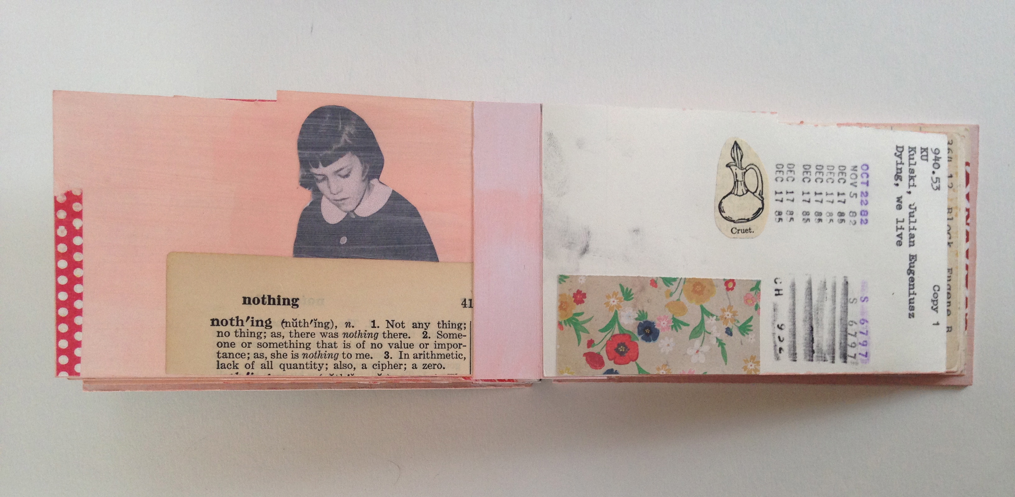 The Take Care Blues is a single row flag book made with 33 reclaimed library cards. I made this book in response to the overwhelming sadness that can accompany those who take care of homes, people, and relationships.