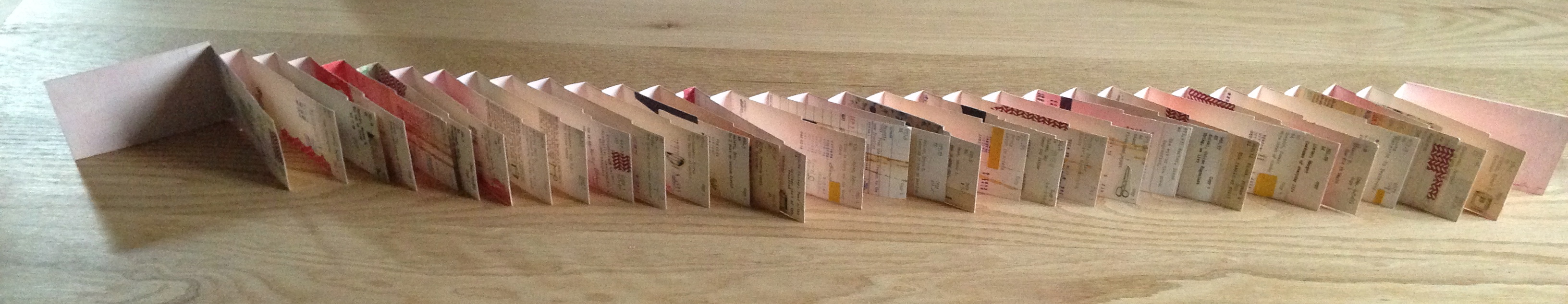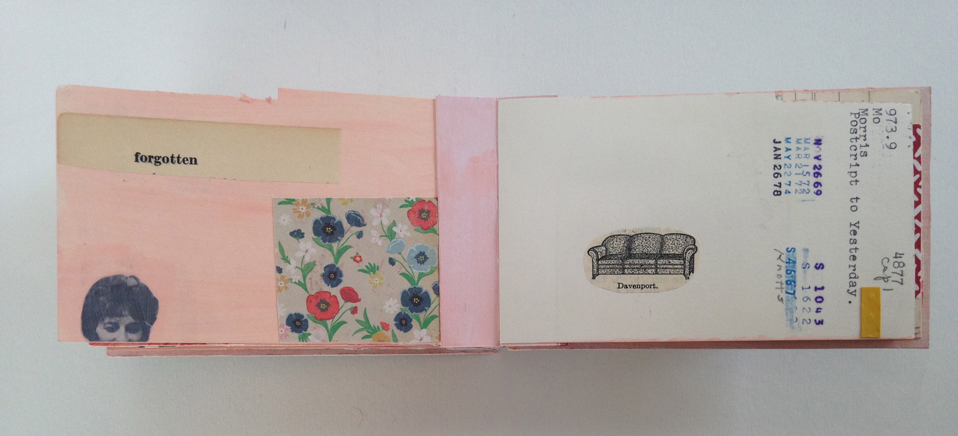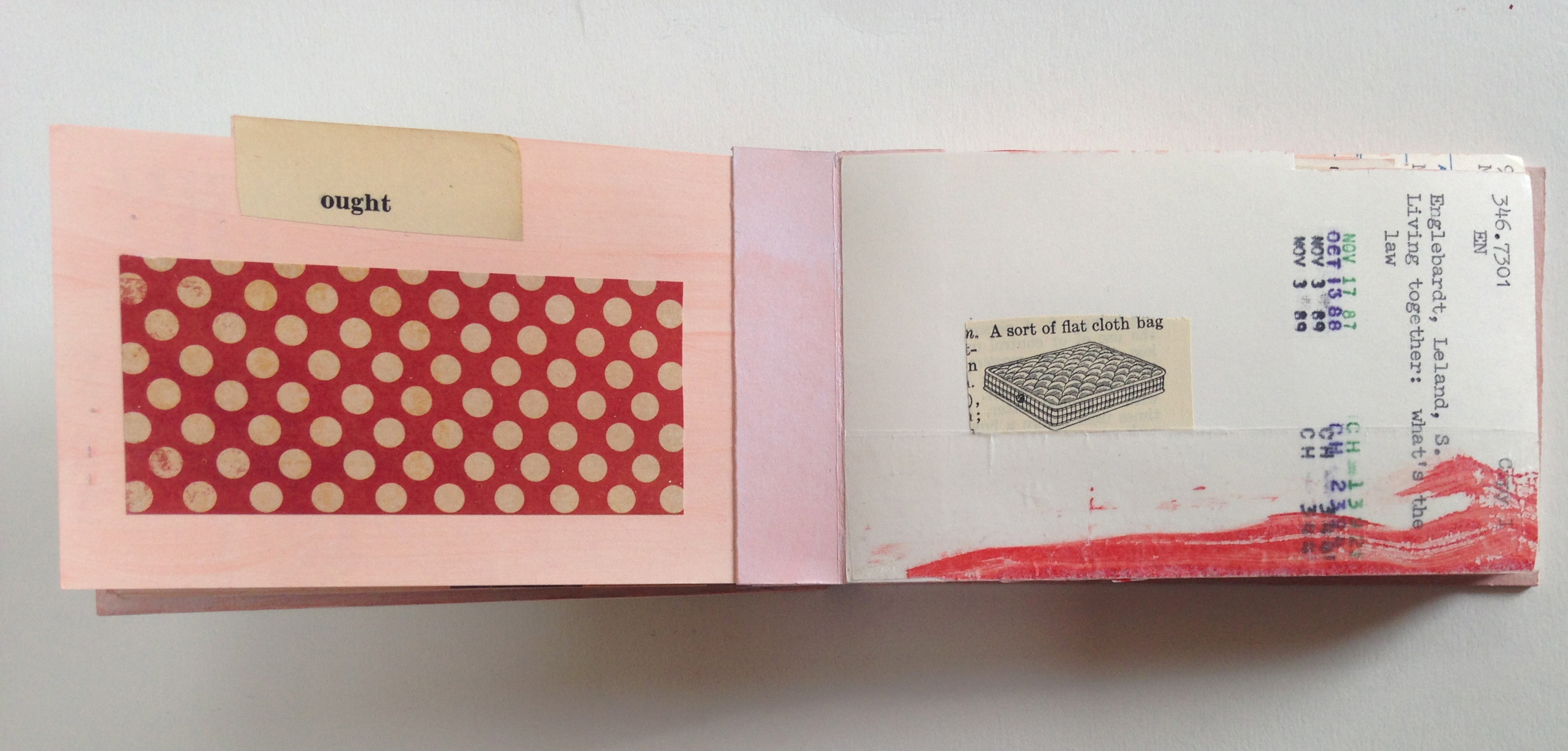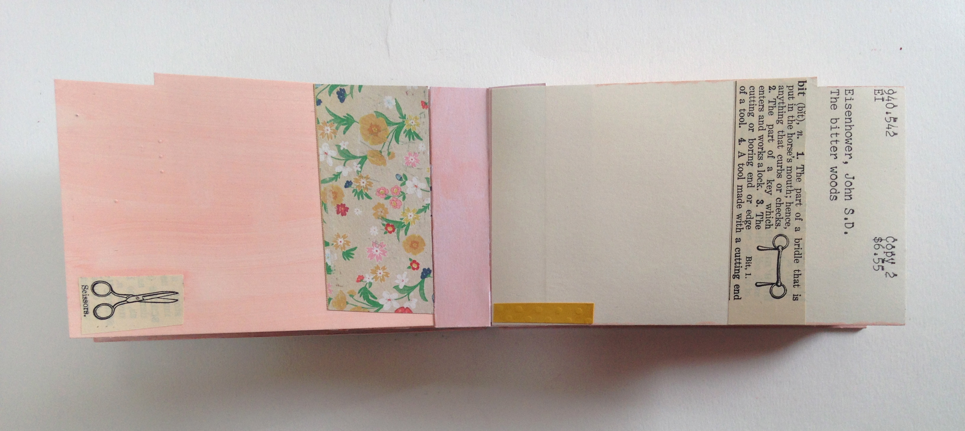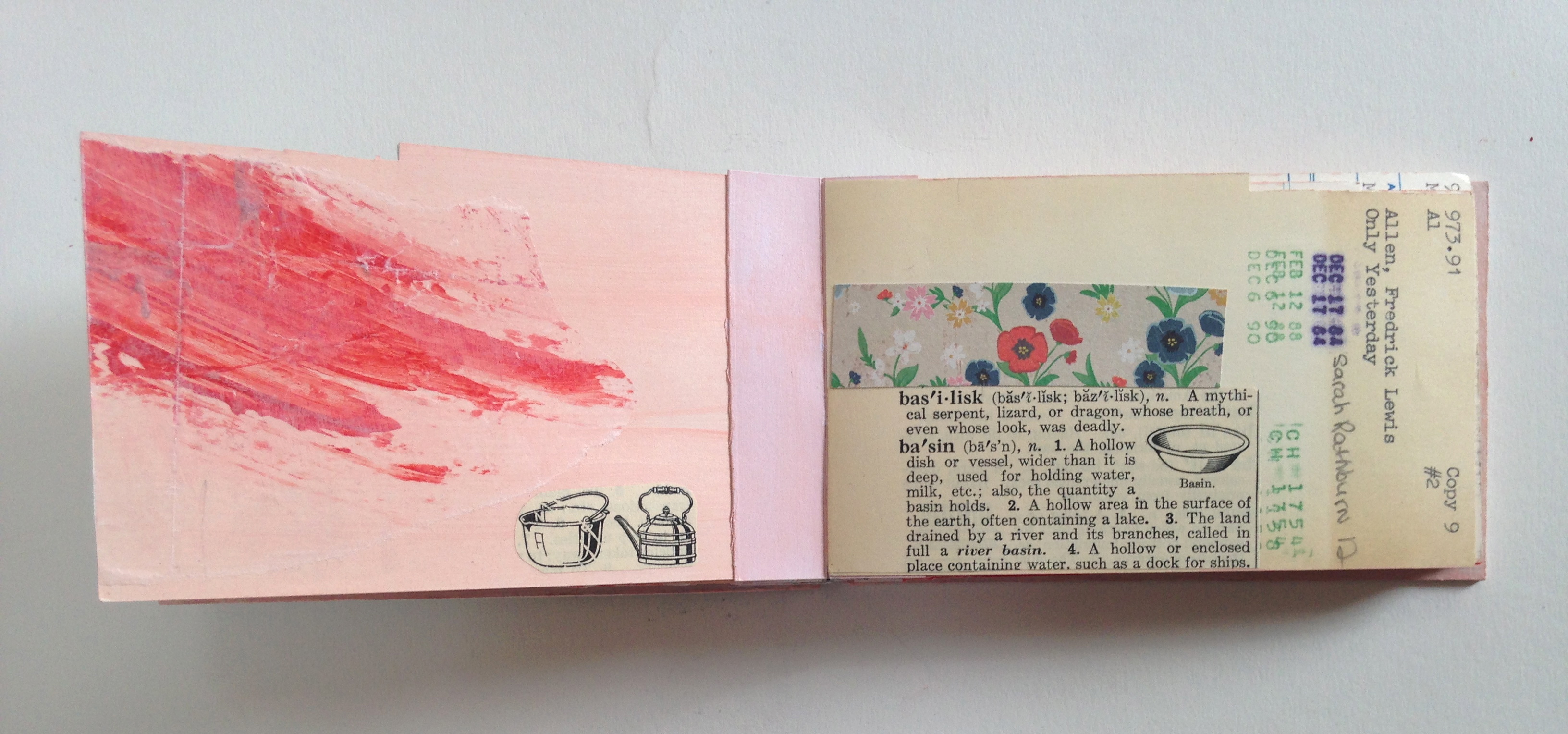 The Take Care Blues is a single row flag book made with 33 reclaimed library cards. I made this book in response to the overwhelming sadness that can accompany those who take care of homes, people, and relationships.