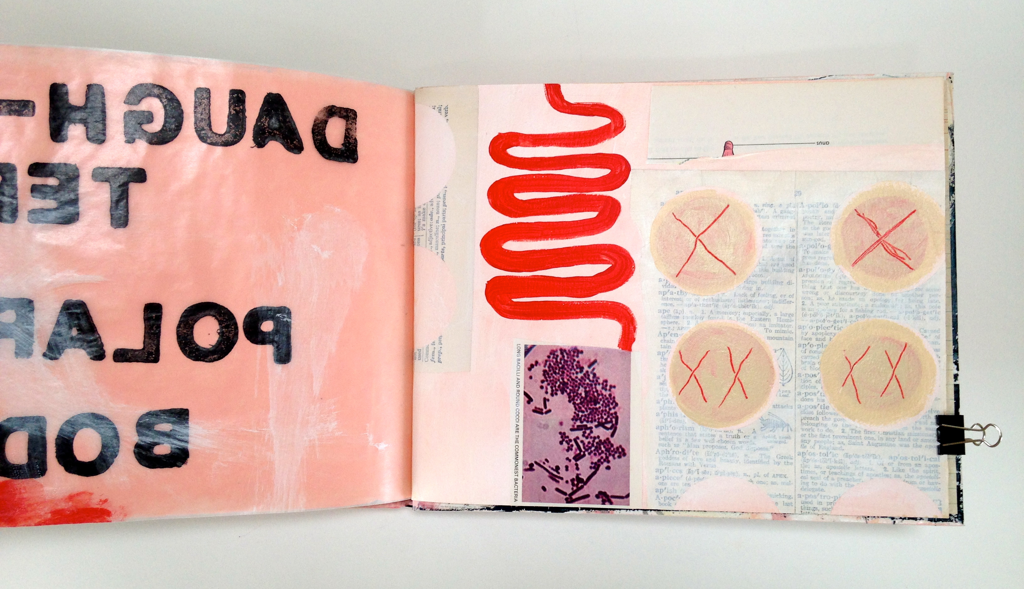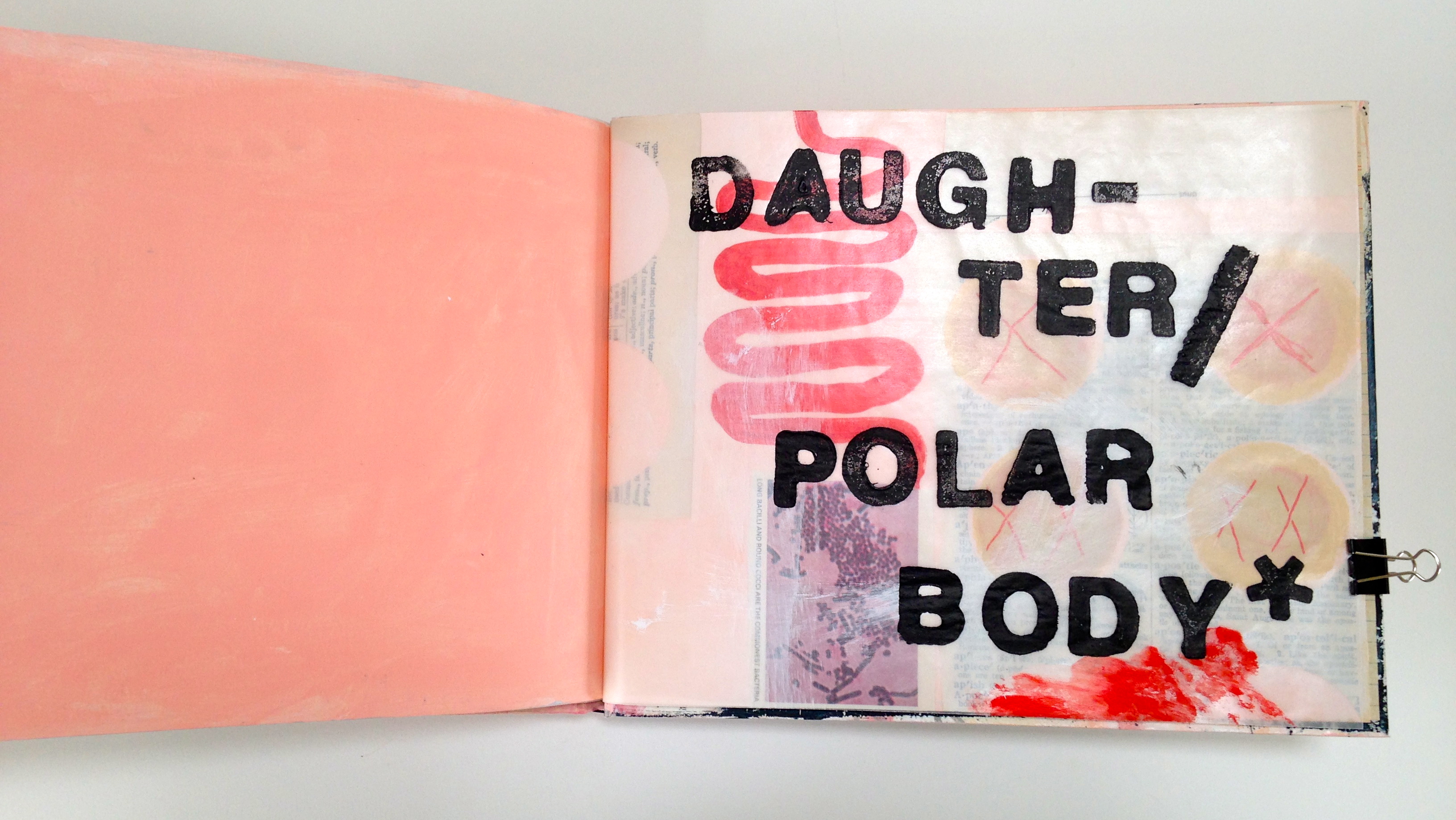 February 19, 2016 / 0 comments Polar Body Polar Body, 9″x12″, Stab binding, Waxed paper, acrylic, pencil, tissue paper, & collage, 2016. Share this: Click to share on X (Opens in new window) X Click to share on Facebook (Opens in new window) Facebook Click to email a link to a friend (Opens in new window) Email Click to share on Pinterest (Opens in new window) Pinterest Like Loading...