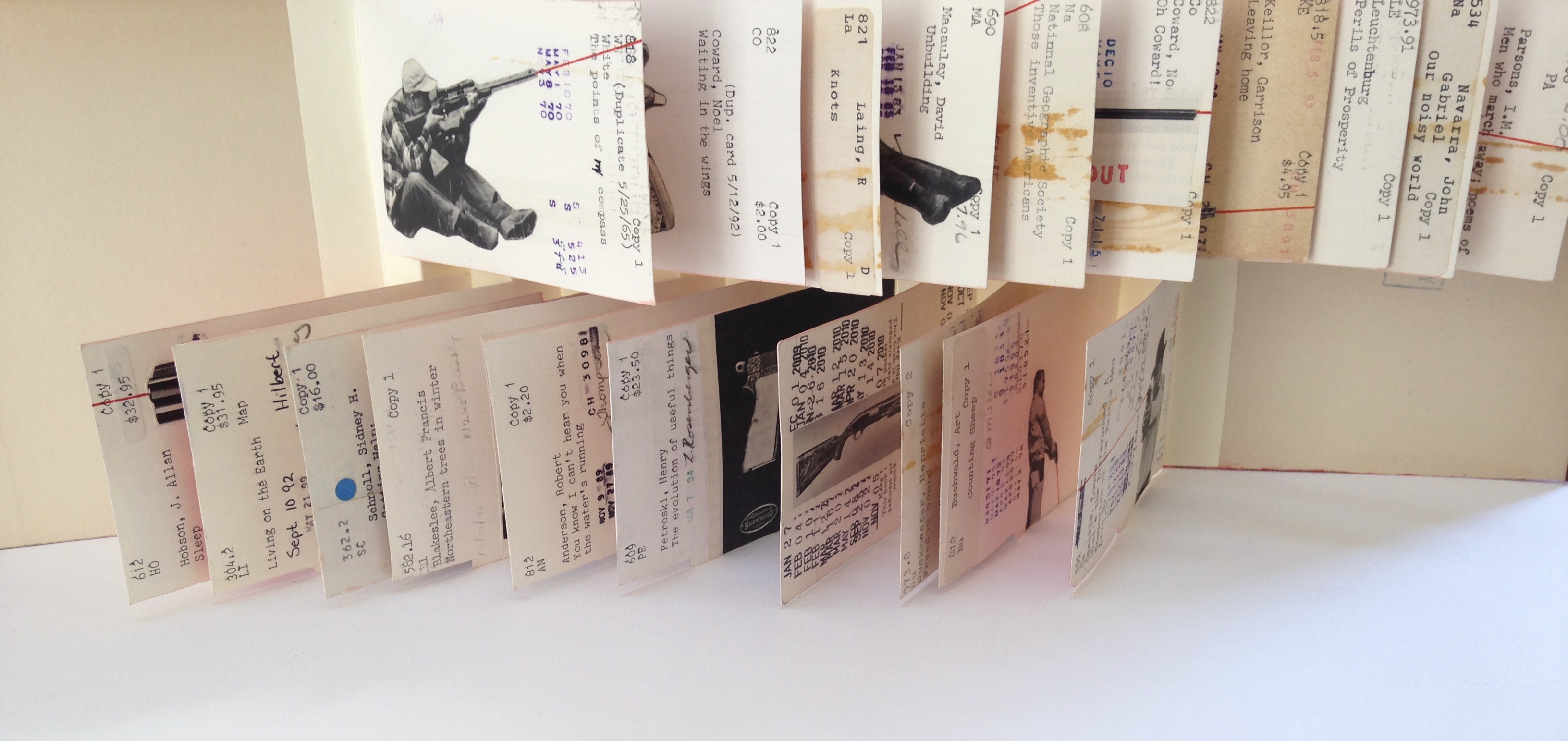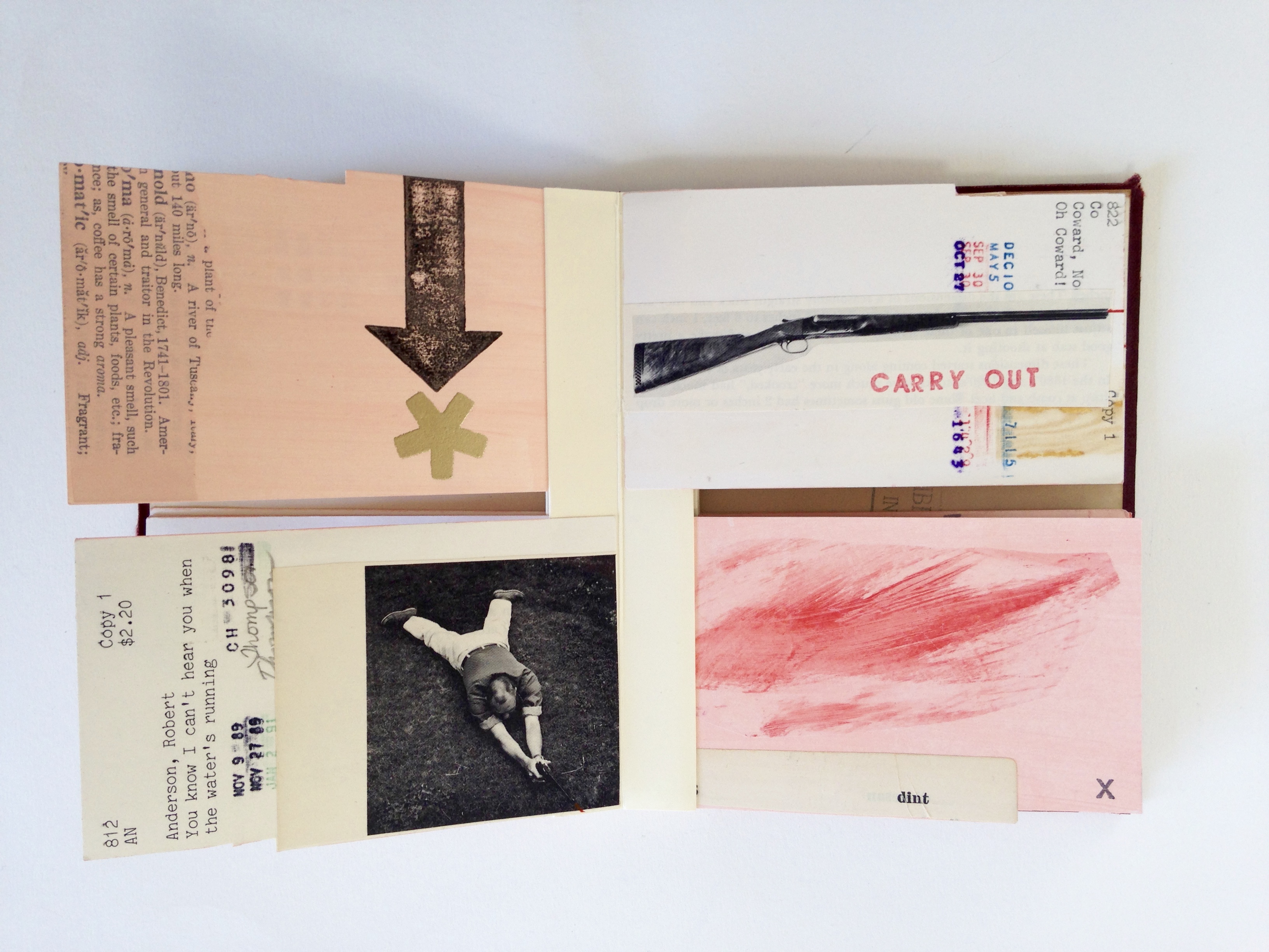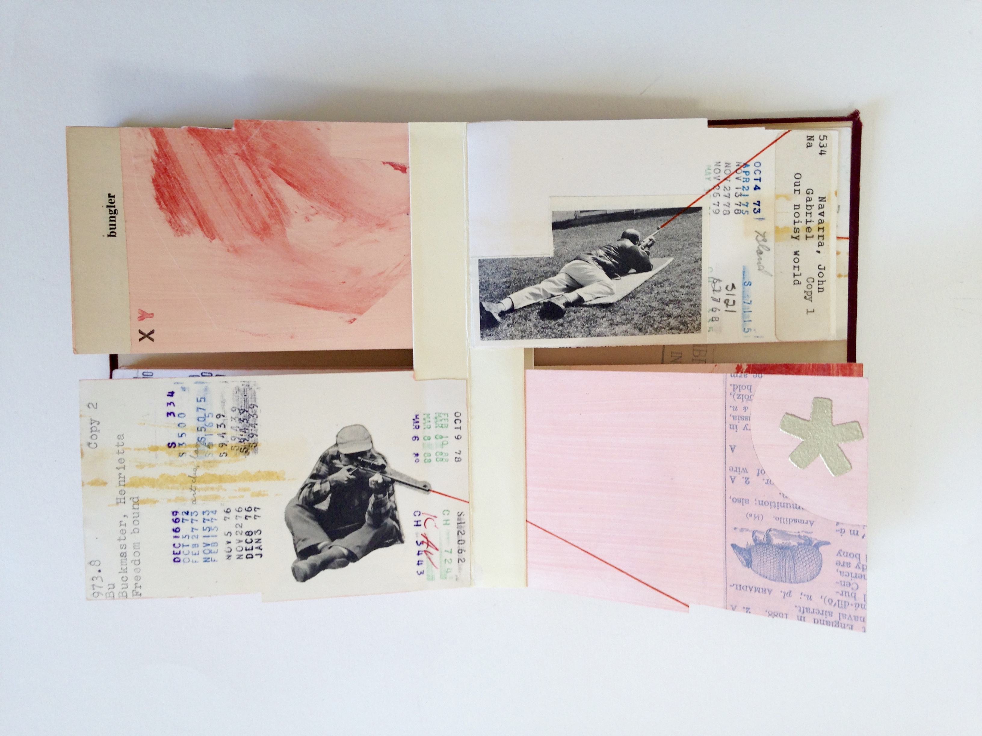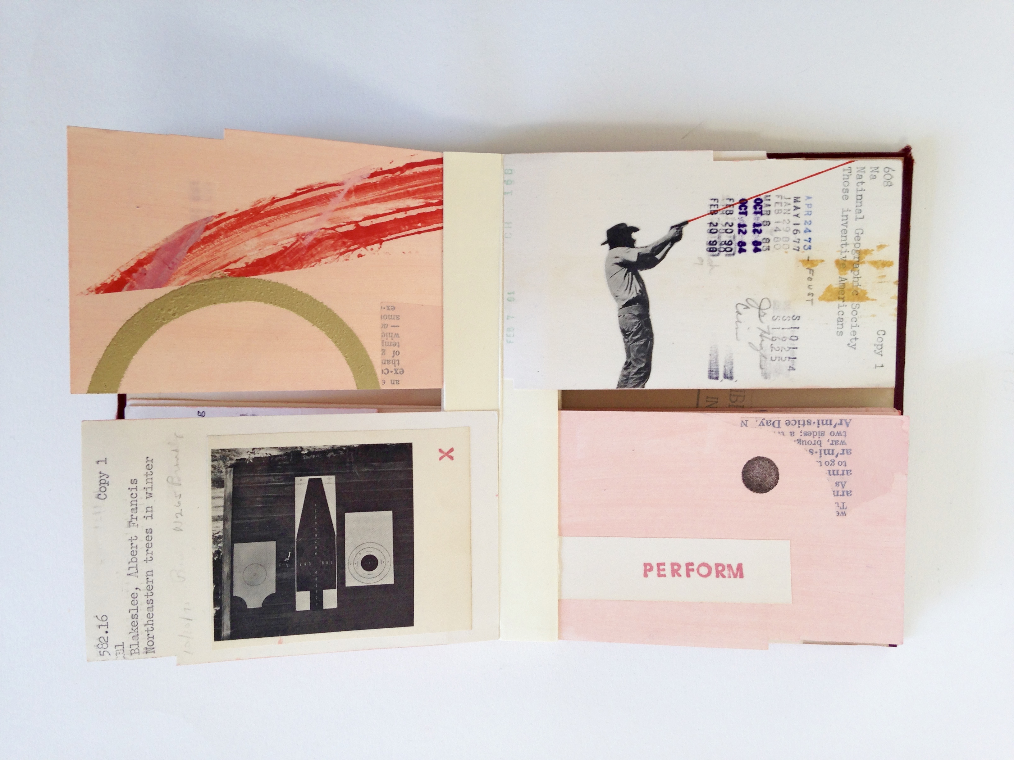 October 28, 2016 / 0 comments Implement Implement, 5″x6.25″, 23″ extended, Flag book binding, Library cards, acrylic paint, ink, embossing, collage, 2016 Share this: Click to share on X (Opens in new window) X Click to share on Facebook (Opens in new window) Facebook Click to email a link to a friend (Opens in new window) Email Click to share on Pinterest (Opens in new window) Pinterest Like Loading...
